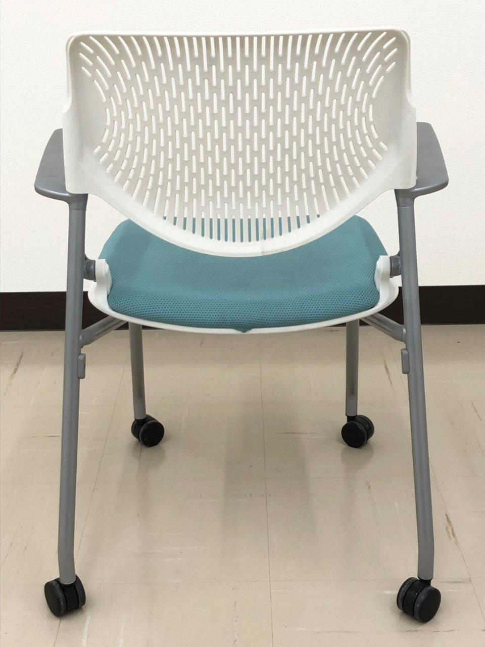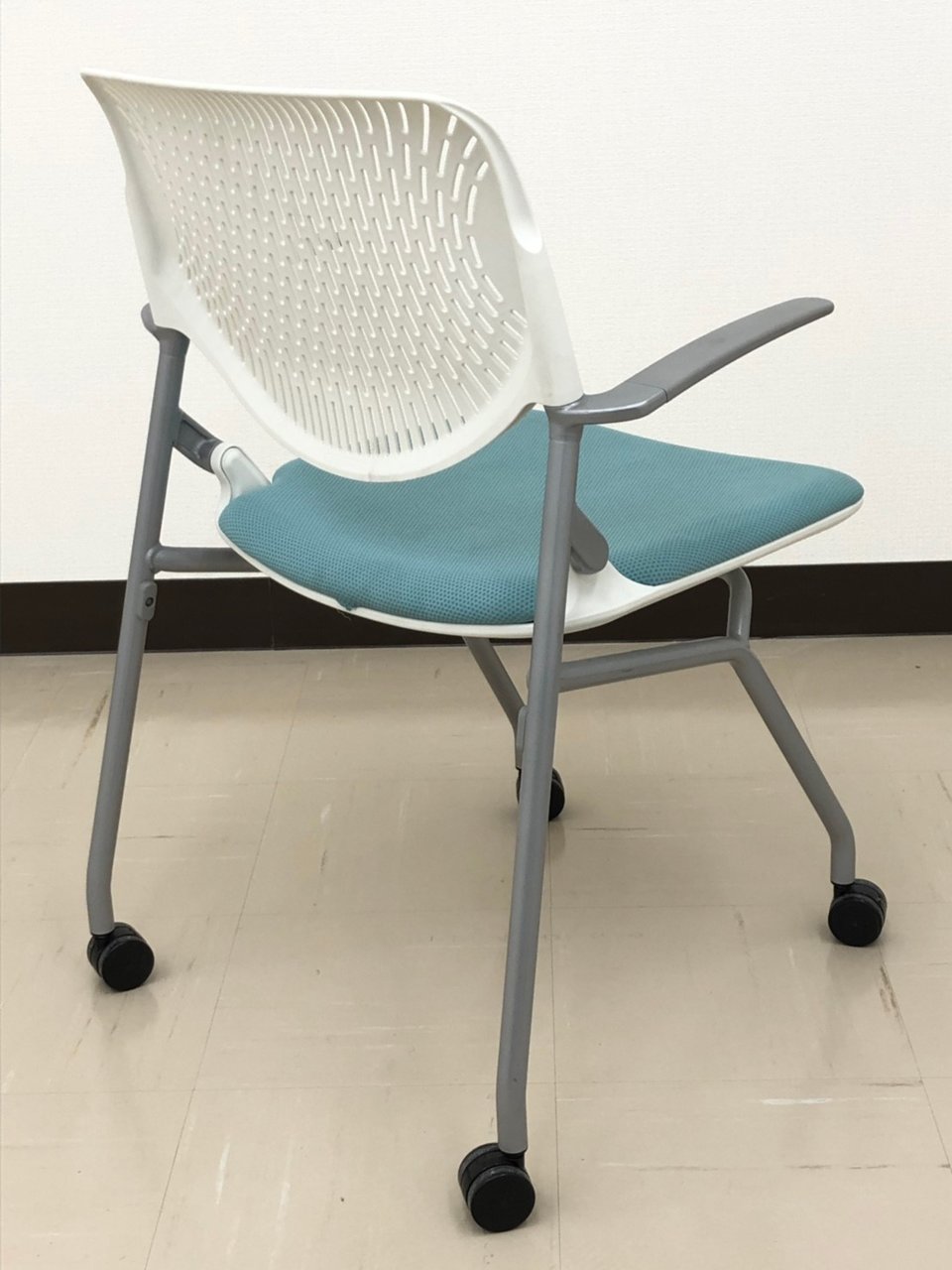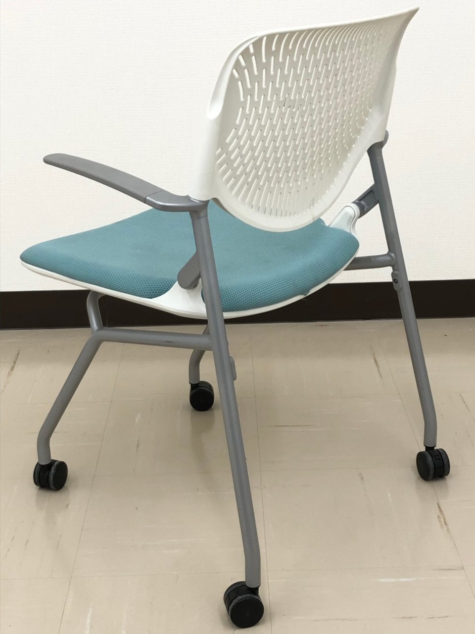 【お値段見直し!】【今なら12脚揃います!】珍しい肘掛付きのミーティング用!■セージ色【RP】- 埼玉本店