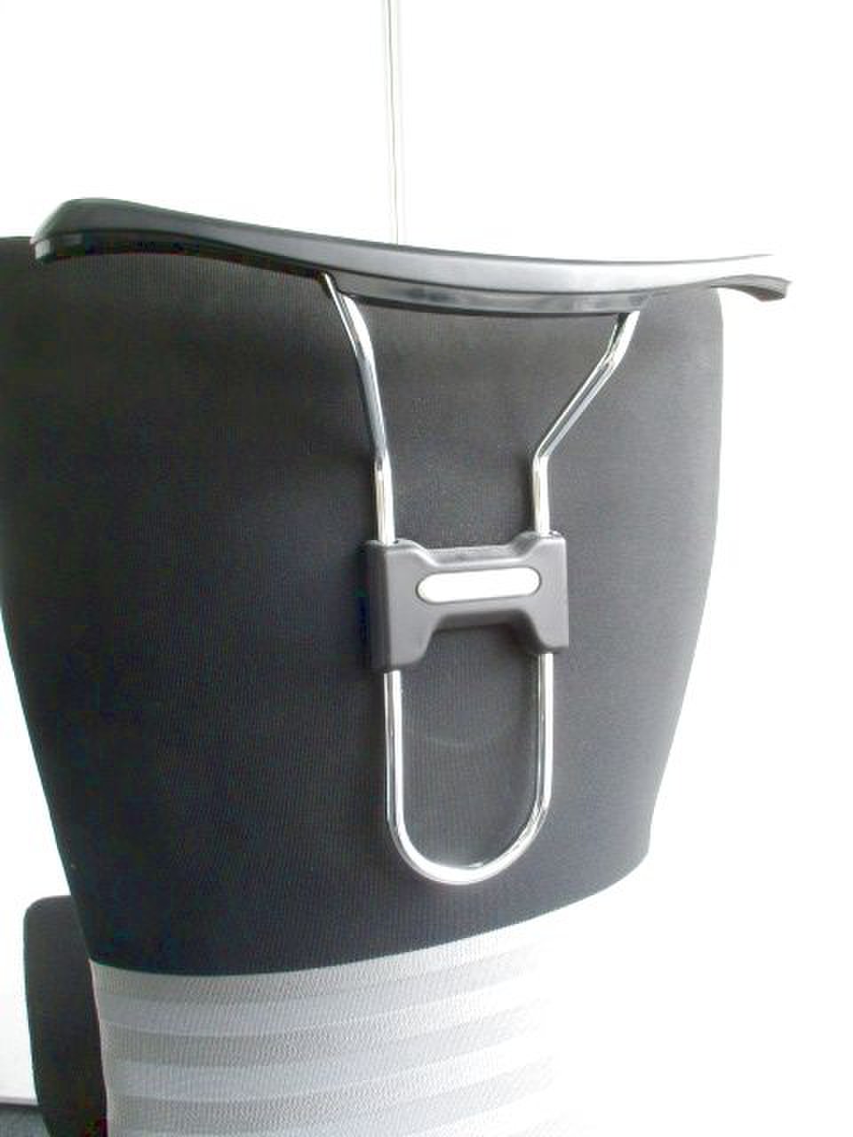 - 背もたれの裏側にハンガーがついているので上着などを形よく掛けられ、袖や裾が床に付きにくくなります。