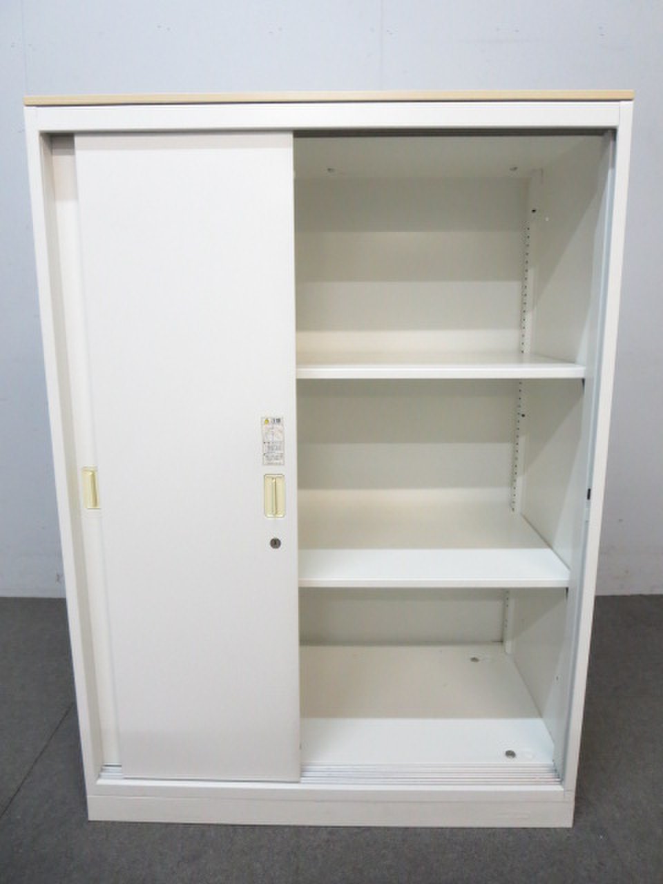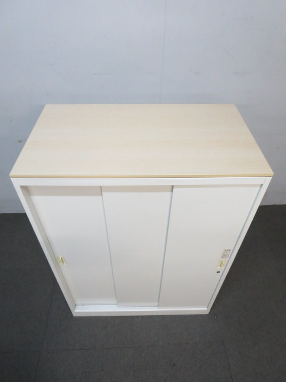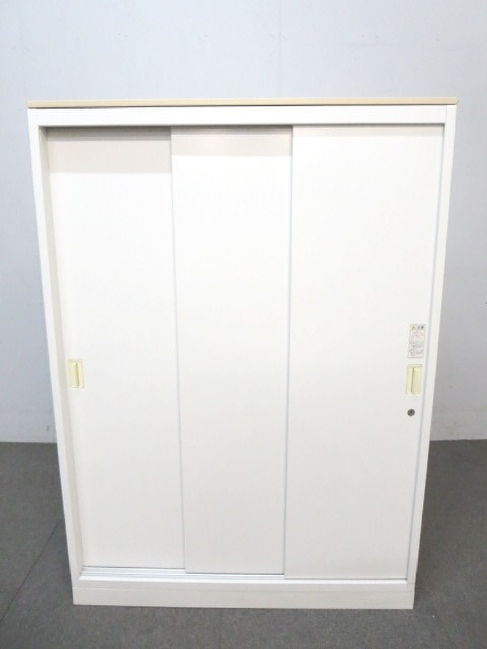【開け閉めしやすいスライド式!】■オカムラ製 3枚引戸書庫 ■ホワイト 木目柄天板付- 川崎店