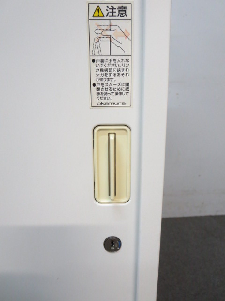 オカムラ製 人気レクトラインシリーズ ホワイト シリンダー W800xD450XH1050 3枚引戸 ※ベースなし 3枚引き違い書庫!!