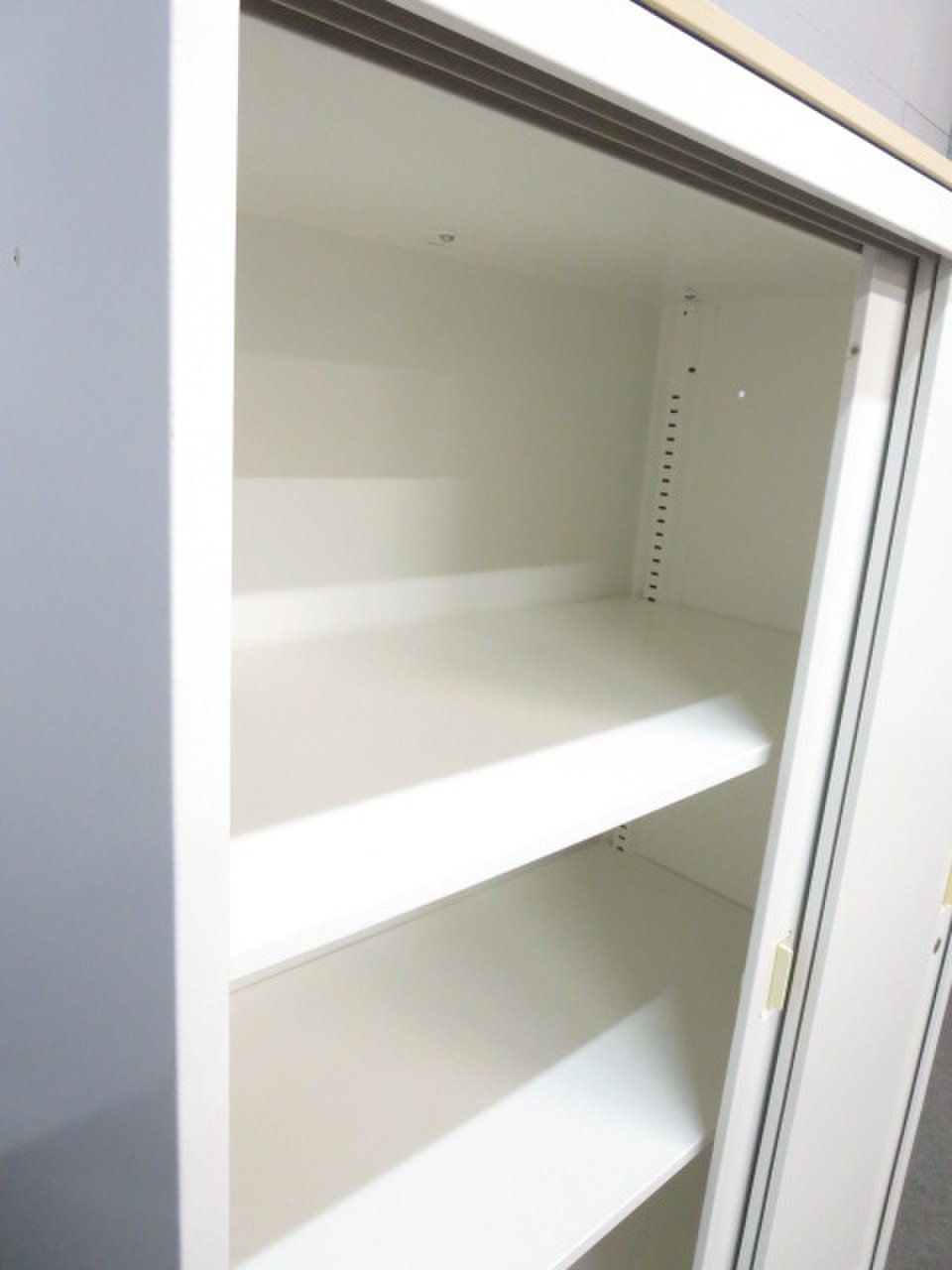 2枚引き戸書庫 オカムラ レクトライン 鍵付き シリンダー錠 ホワイト 天板無し スライド式の扉のため導線を邪魔しません