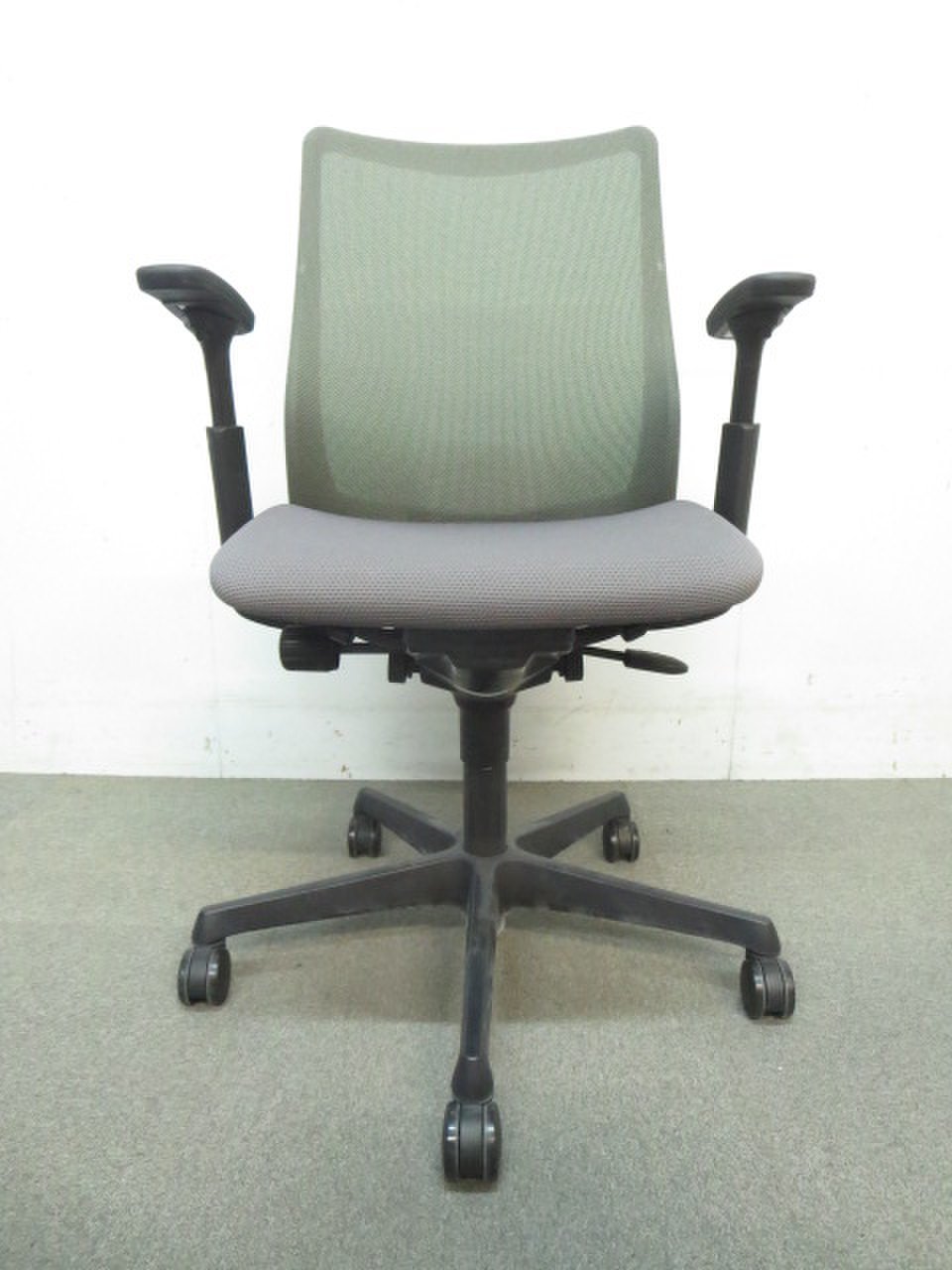 オカムラ フルーエント 肘付きローバックモデル 背メッシュ アジャストアーム ミディアムグレー×ブラックフレーム【愛知・名古屋・豊田・静岡・浜松】