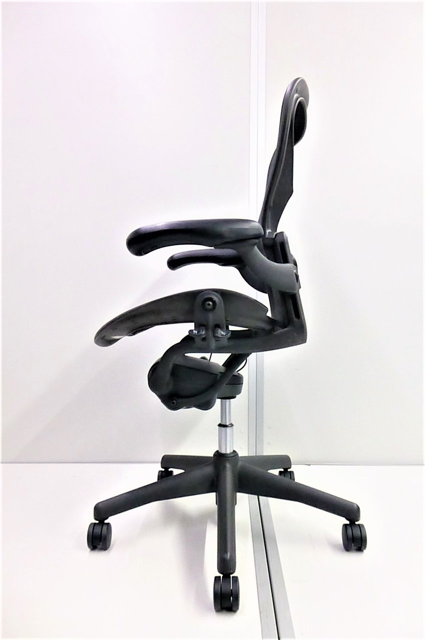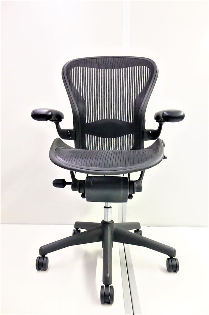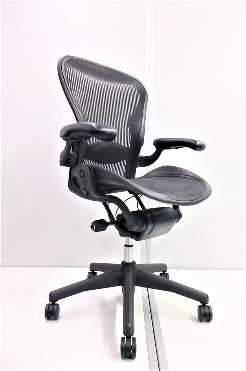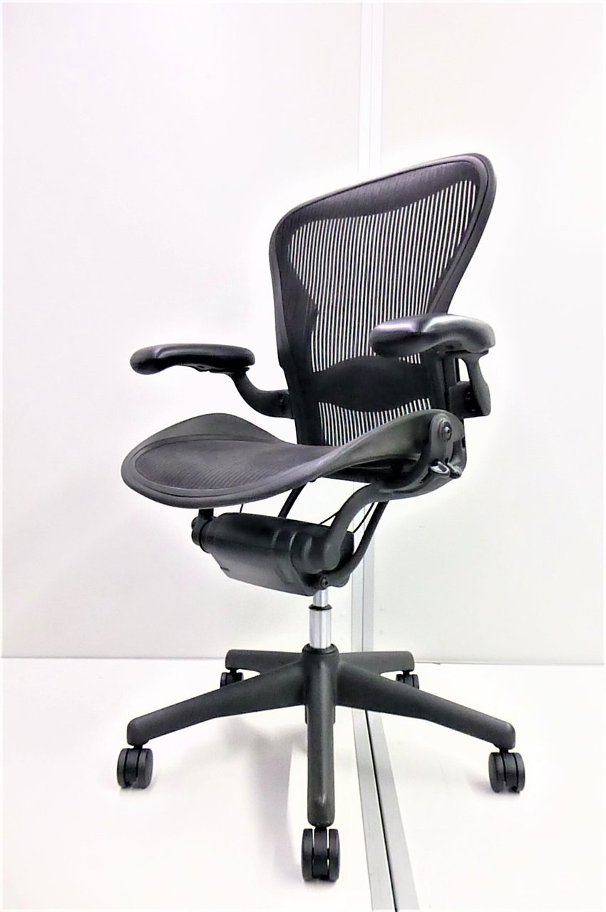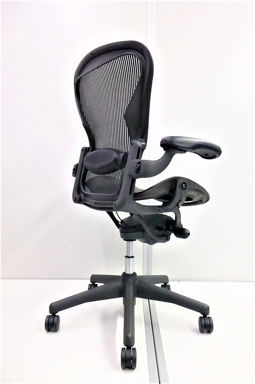 【★状態イマイチのためお安く!】■ハーマンミラー製 アーロンチェア Bサイズ 固定肘 ※キズあり・ランバーサポート無・昇降ガス圧弱めのためお安く!【訳あり特価品】