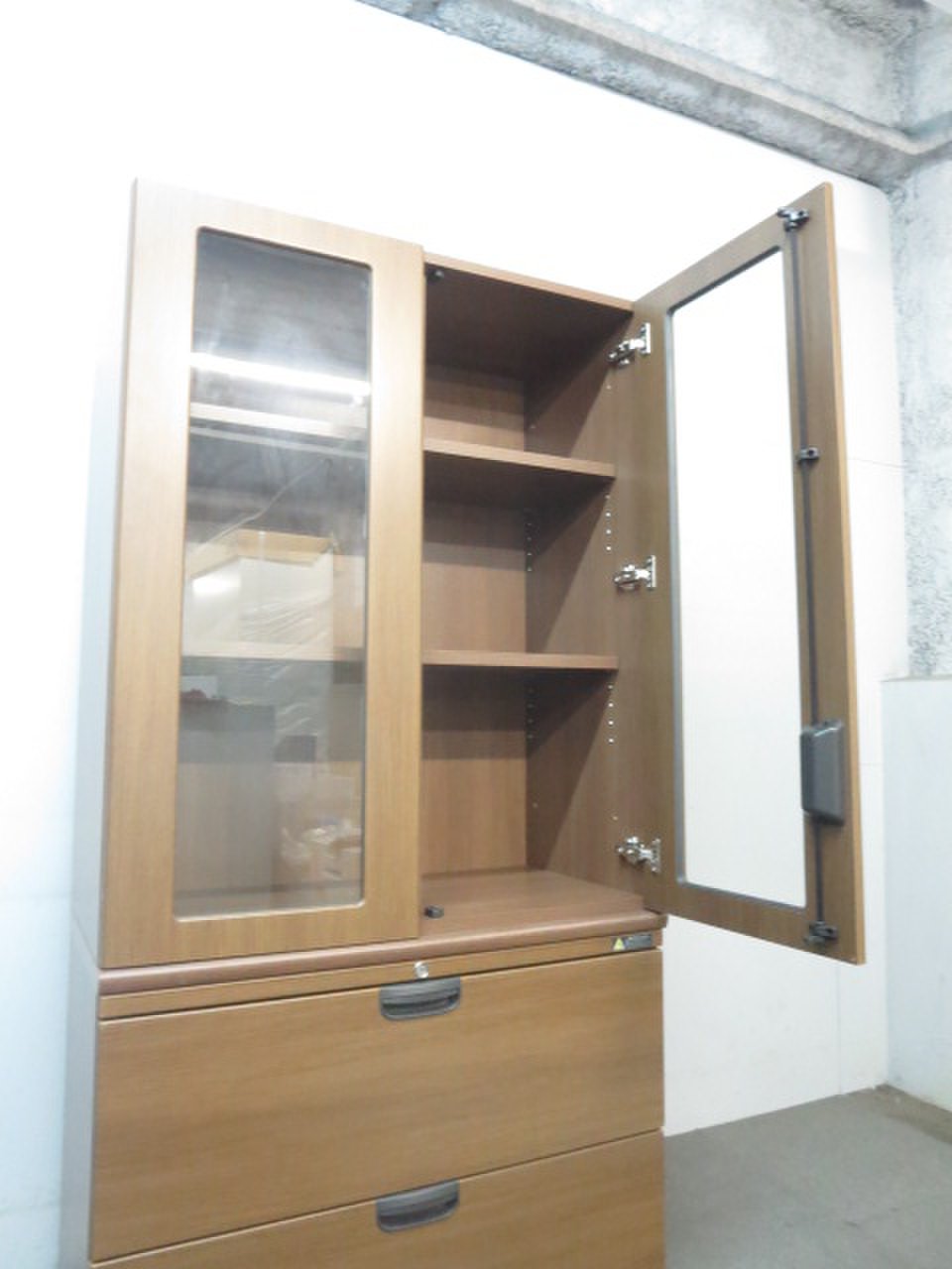 オカムラ製の役員用ガラス書棚です。