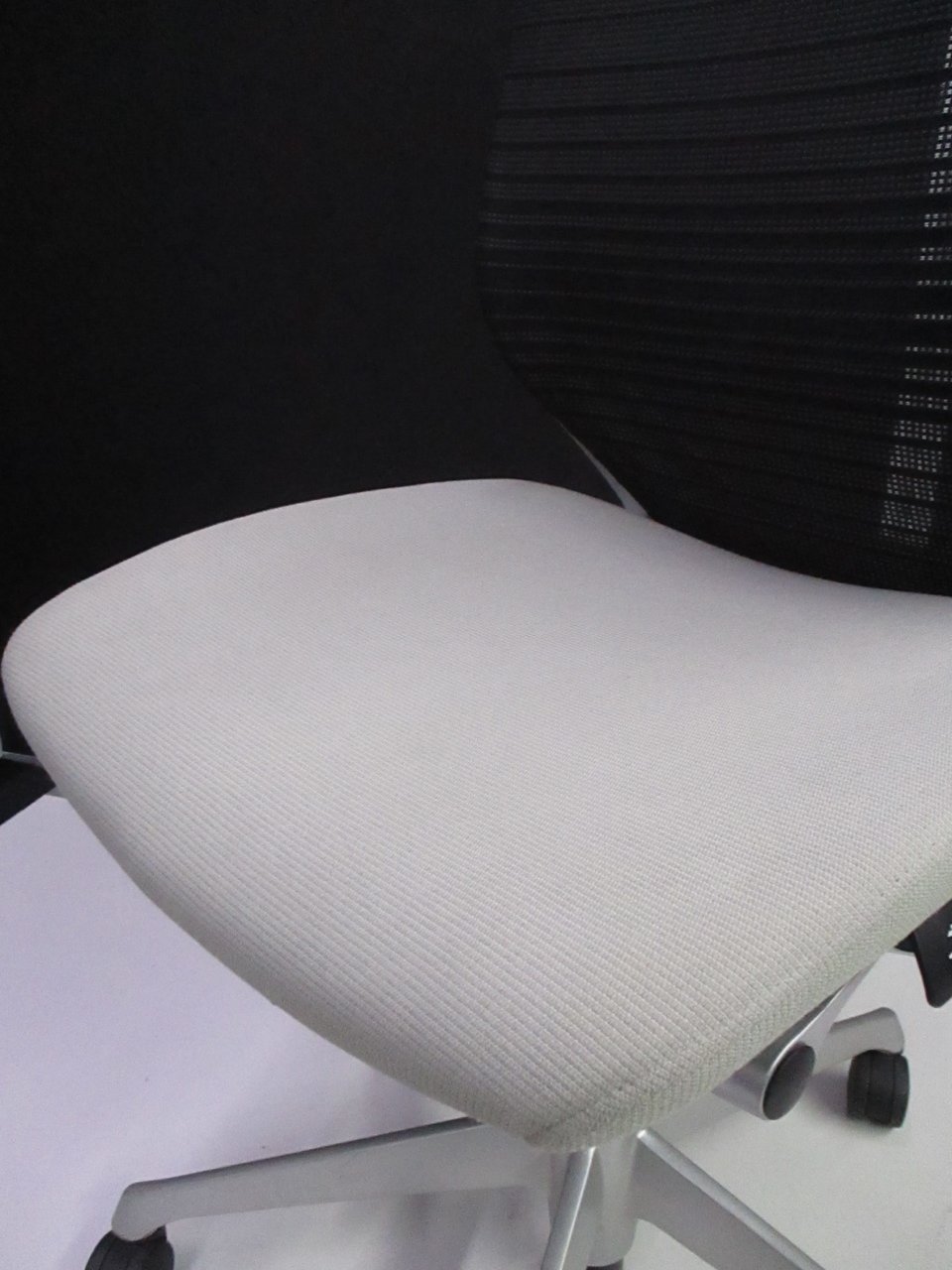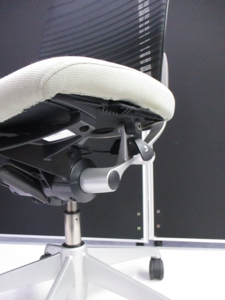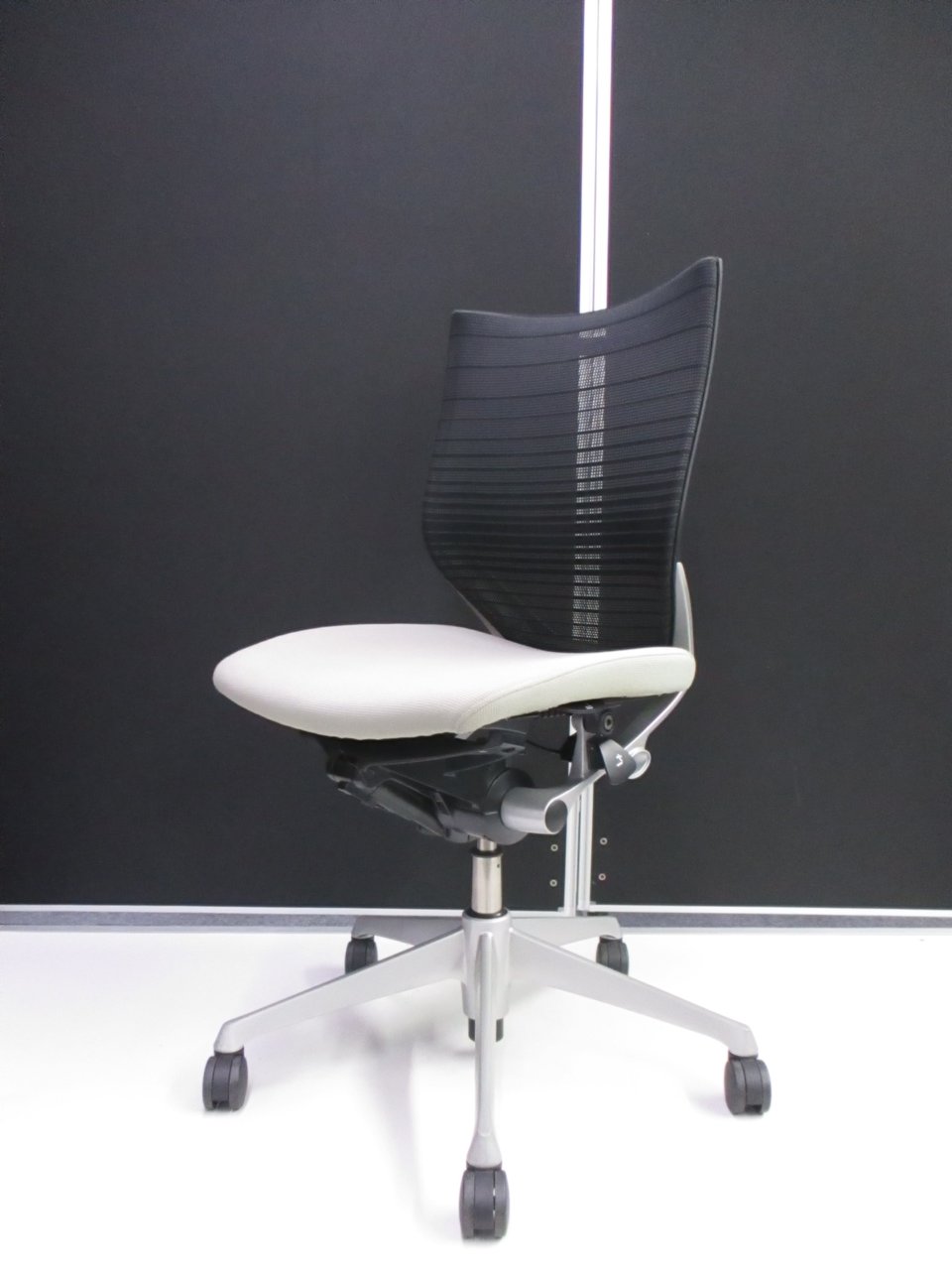 もちろん座り心地もコンテッサの直系ですから快適です。座面の素材はクッションとメッシュの2タイプあります。私、個人的には座面の中心部分でも外側でもテンションが変わらないクッション素材が、足を閉じても開いても快適なので推しです!"