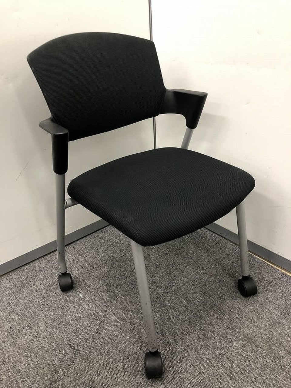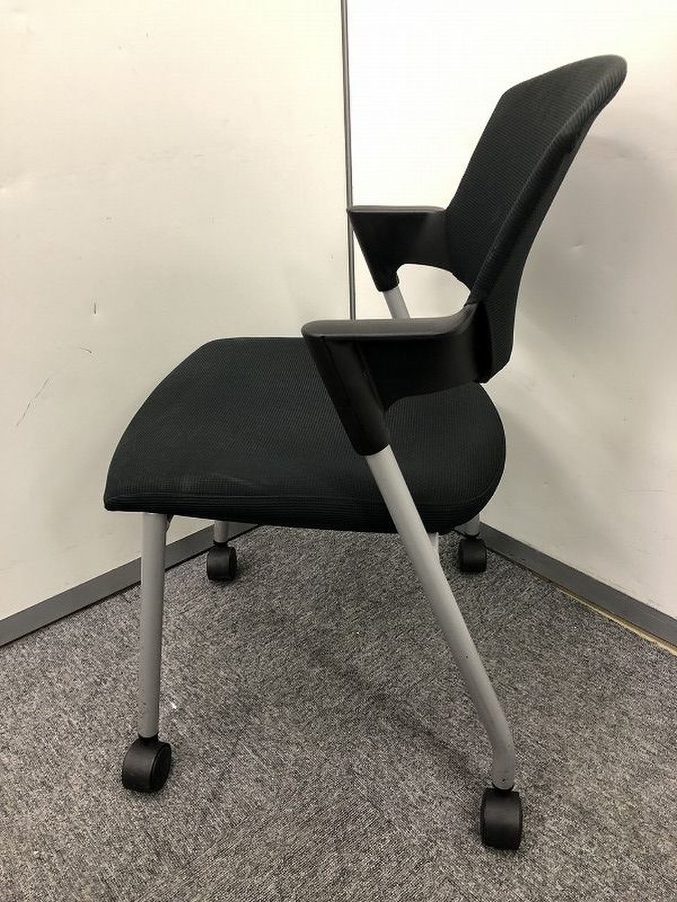 【シンプルスマートなスタッキングチェア!分厚いクッションで長時間でも快適な座り心地!】■スタッキングチェア 肘付ミーティングチェア ■固定肘 ■キャスター付 ■ブラック ■背面樹脂/コクヨ(KOKUYO/プロッティ