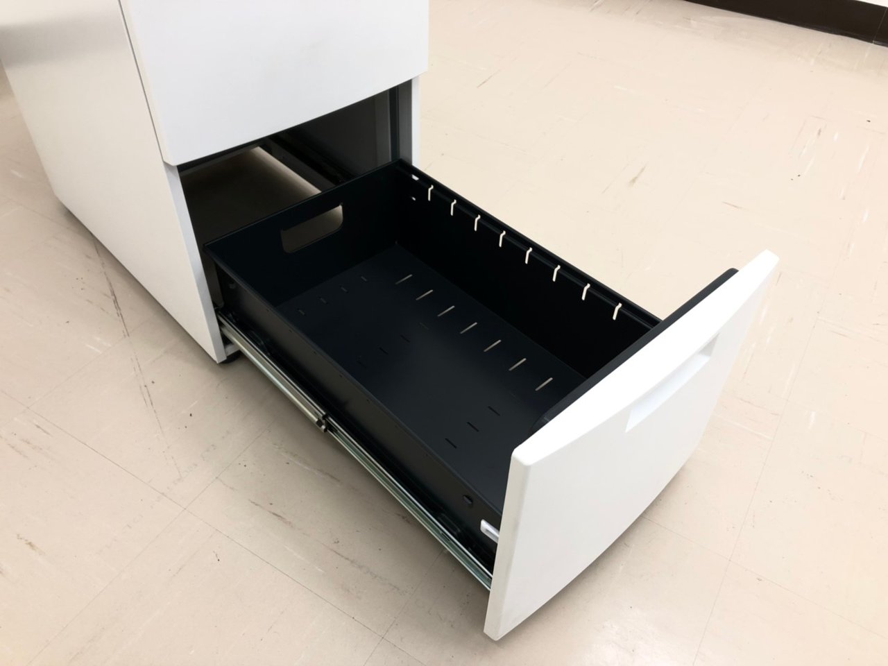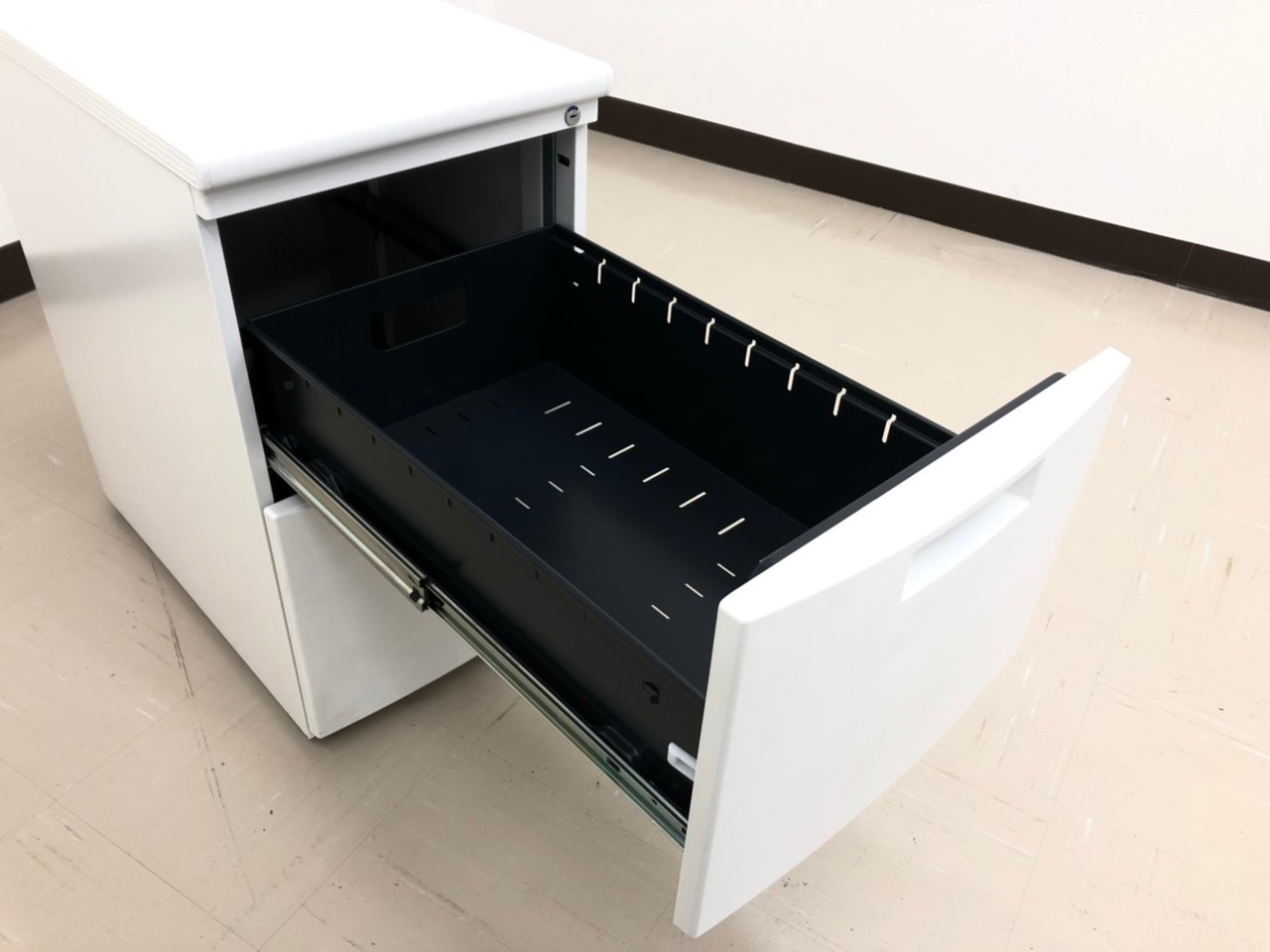 - 一部不具合ありその脇机・ワゴンの本来の効用を果たすための機能以外の一部が使用不可な状態。(例、引出が開閉しづらい、 キャスターロック機能使用不可、ラッチ不良 等がある。)