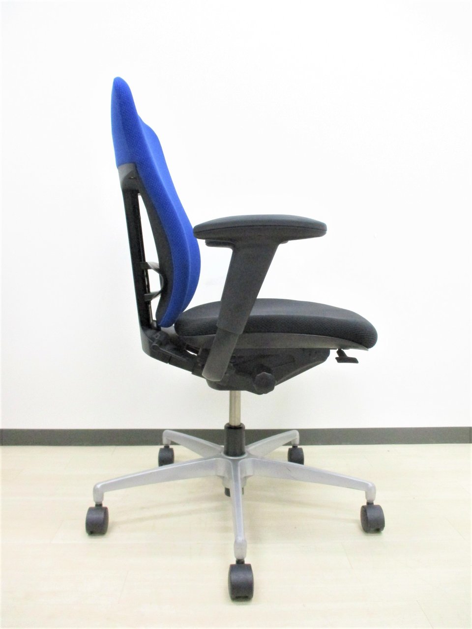 【一人ひとりにマッチする座り心地!ミドルクラスの定番チェア!】■イトーキ(ITOKI)製 プラオ(PRAO)チェア 肘付ハイバック ■ストロングブルー×ブラックシェル ■可動肘(ソフトパッド) ■ランバーサポート付き