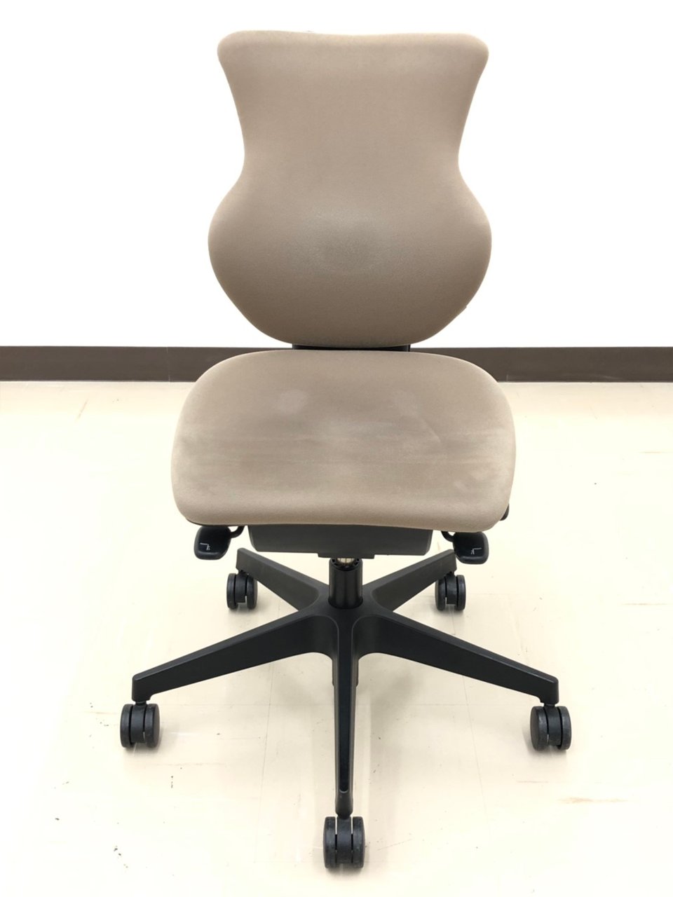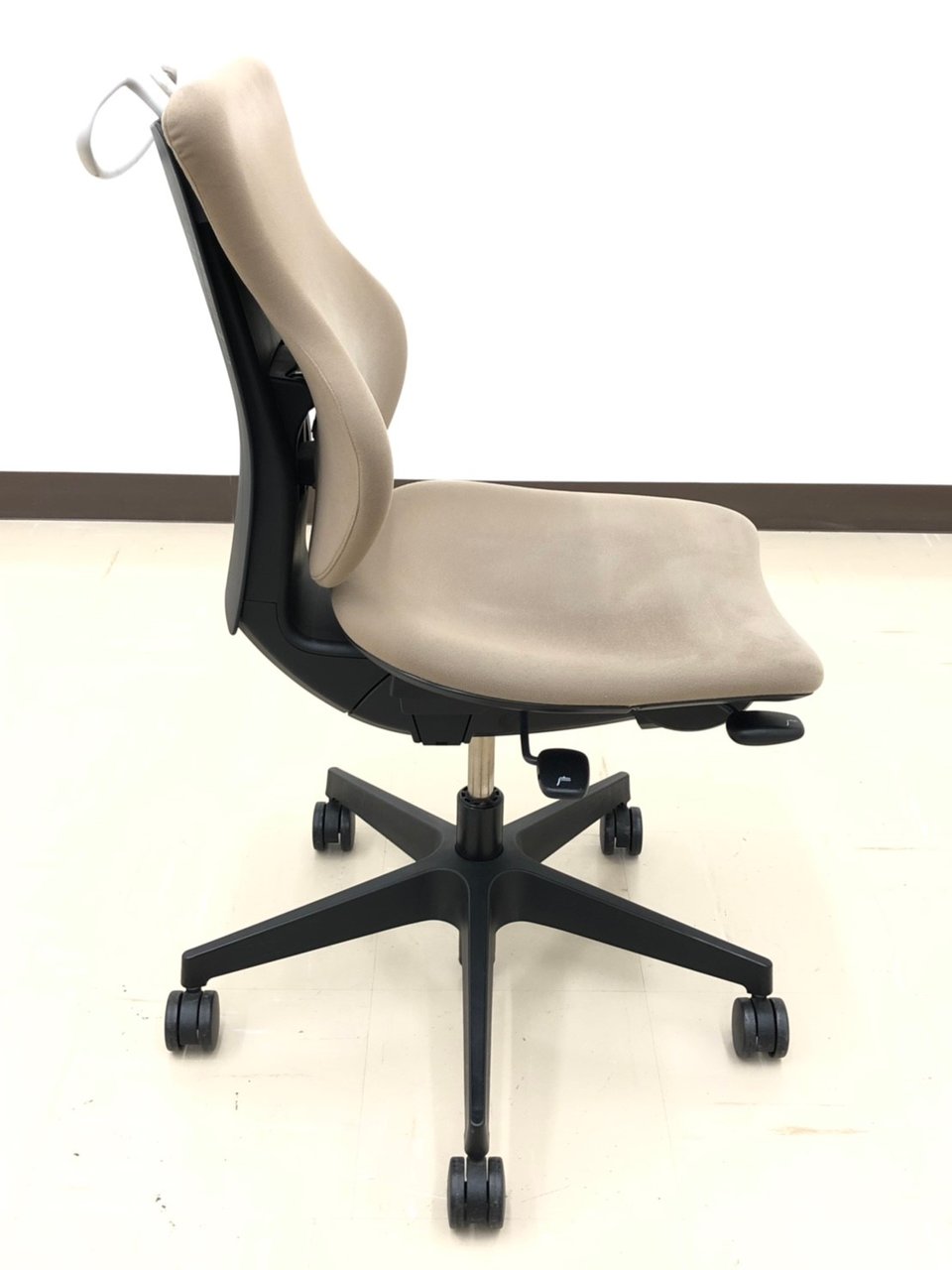 - 女性の作業姿勢に多く見られる2つの姿勢を、美しく支える背もたれ形状です。後傾しても背のラインを崩しません。