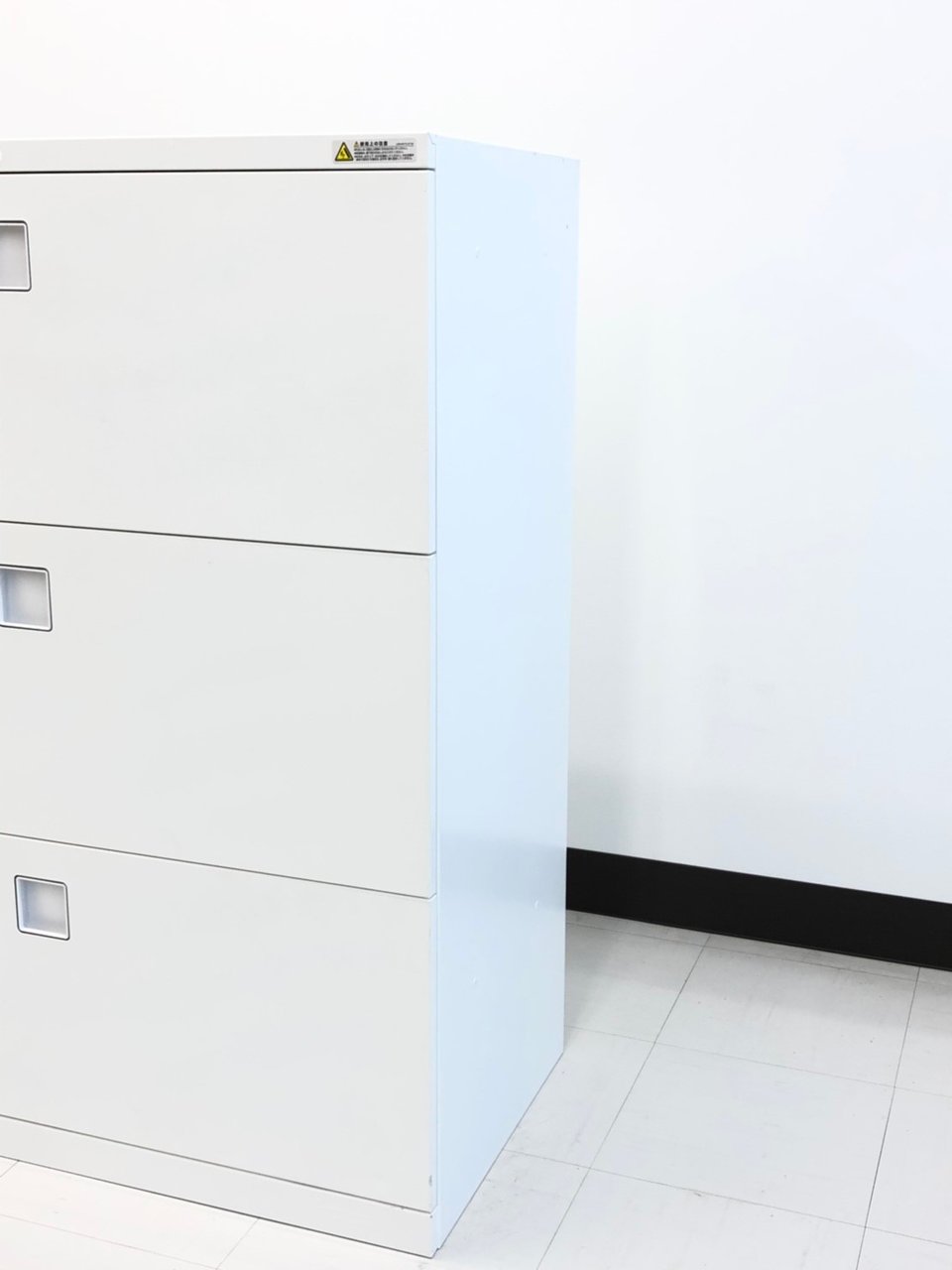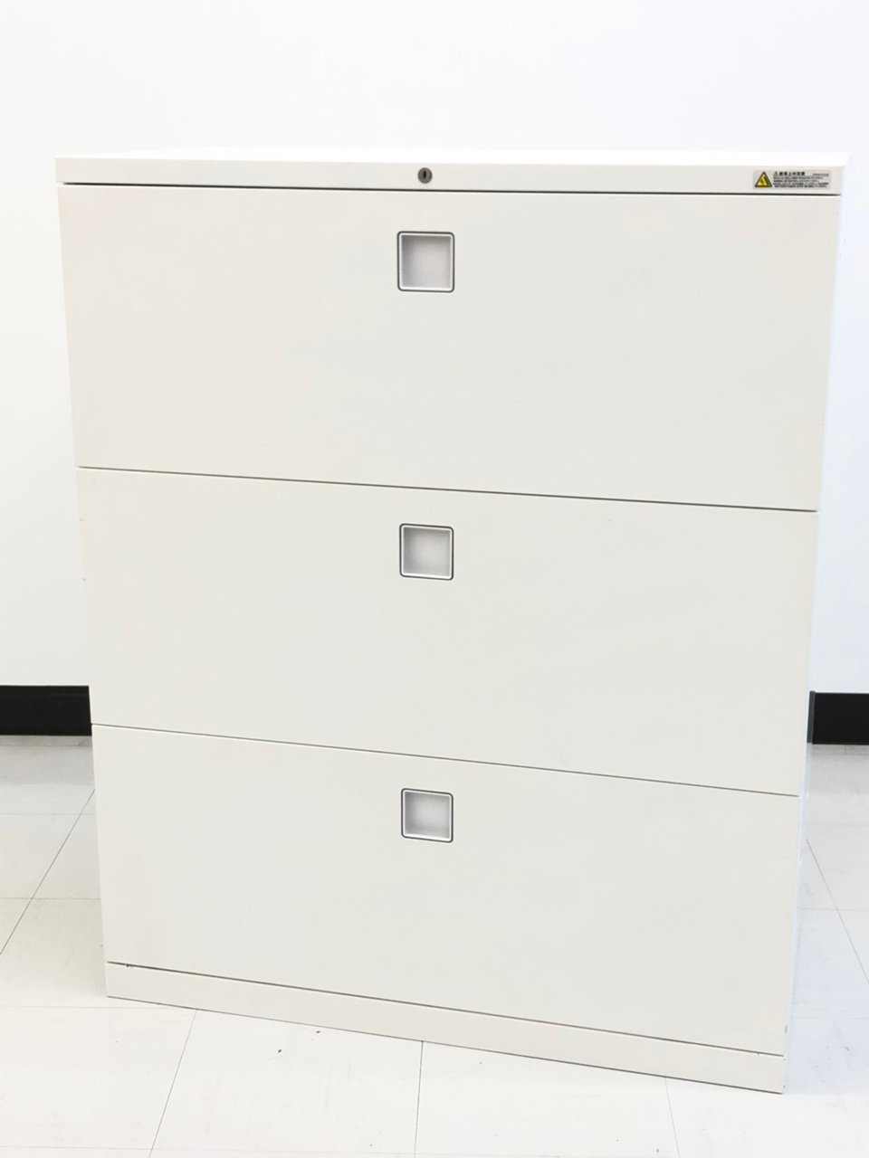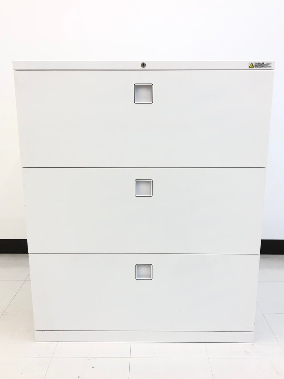 【ファイル収納にオススメ!高品質で使いやすい人気シリーズの3段ラテラル書庫!】■オカムラ(okamura)製 レクトラインシリーズ 3段ラテラル書庫 ローキャビネット H1100㎜ ■ホワイト ■シリンダー鍵 ■天板付き(天板:ホワイト) ※日焼け有