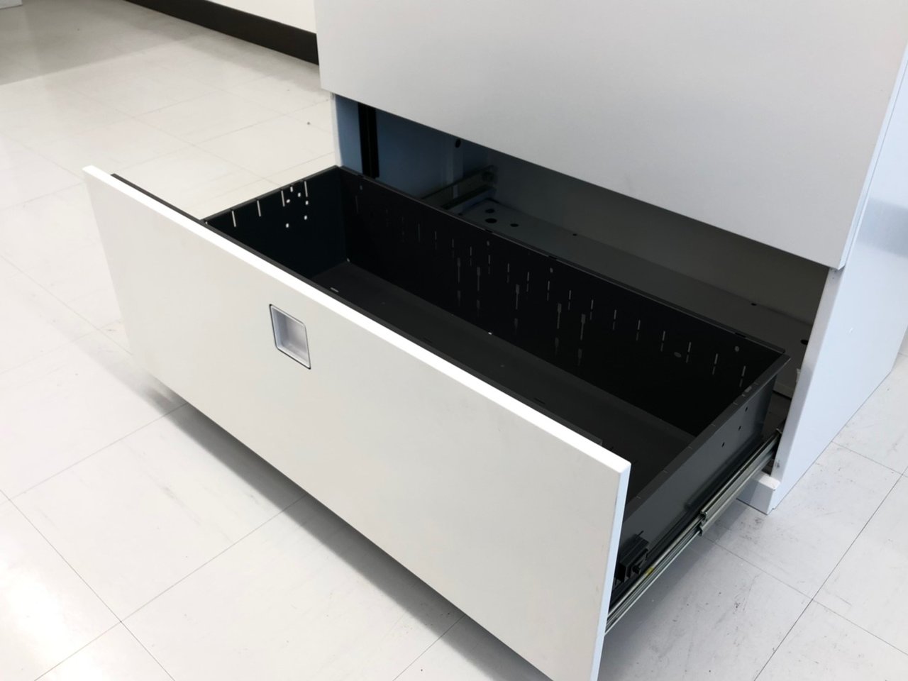 【オフィスの必需品!大容量の三段キャビネット!】■オカムラ(okamura)製 レクトラインシリーズ 3段ラテラル ローキャビネット ■ベース付 ■シリンダー錠 ■ホワイト 【弊社使用欄:A01037187】