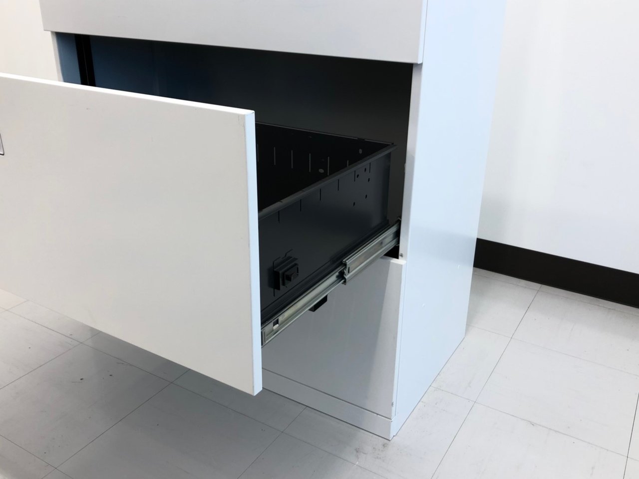 【オフィスの必需品!大容量の三段キャビネット!】■オカムラ(okamura)製 レクトラインシリーズ 3段ラテラル ローキャビネット ■天板/ベース付 ■シリンダー錠 ■ホワイト 【弊社使用欄:A01037187】