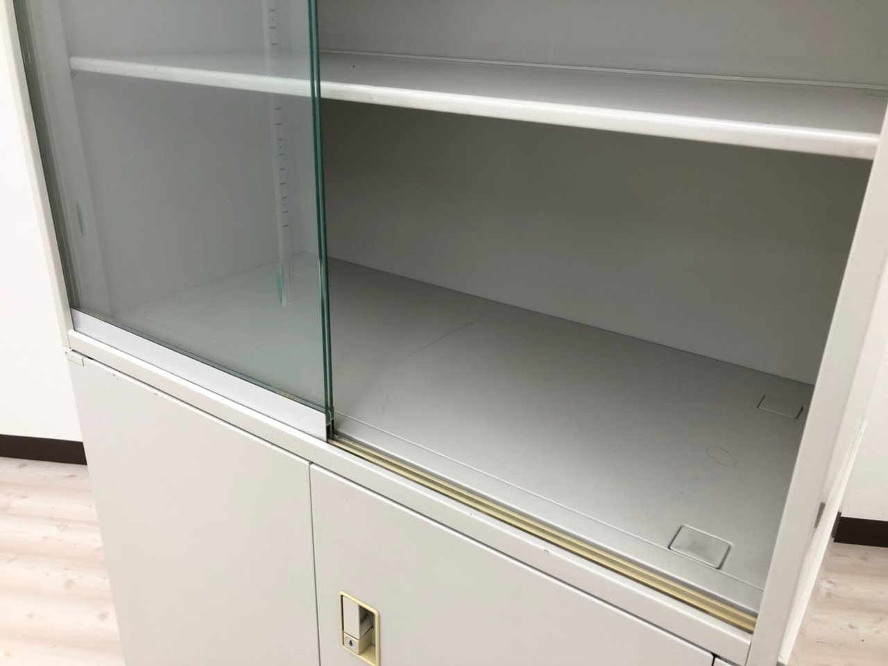 - 一部不具合ありそ引出の開閉不可、施錠不可、棚板無しといったの書庫の本来の効用を果たすための機能以外の一部が使用不可(例、扉、引出の開閉がしづらいなどがある。 )