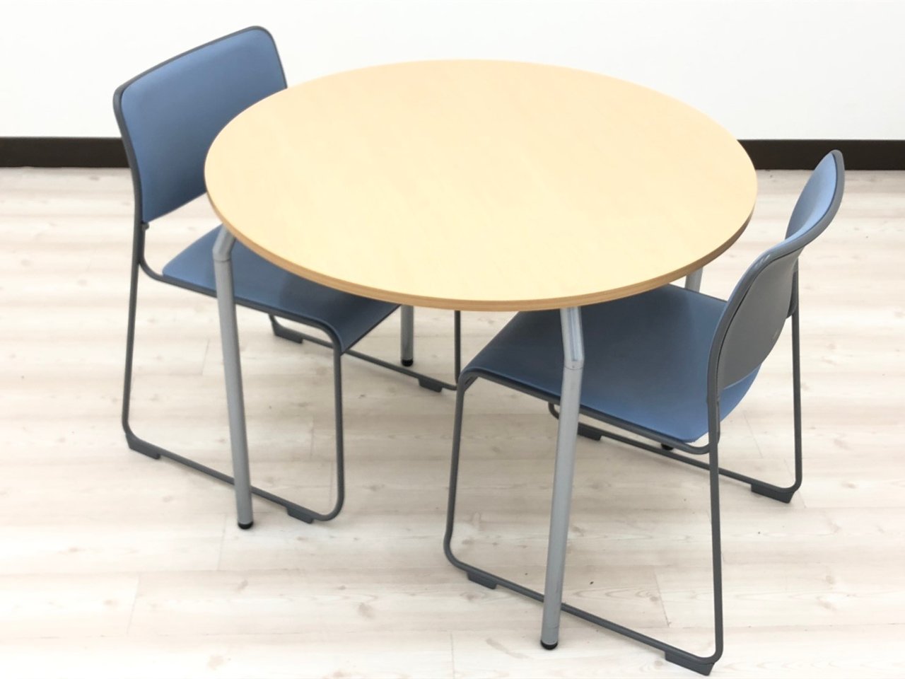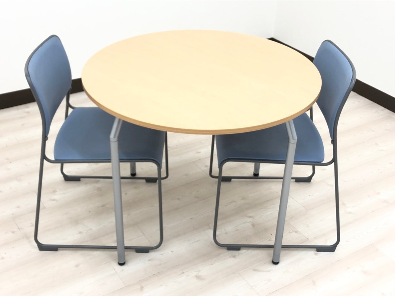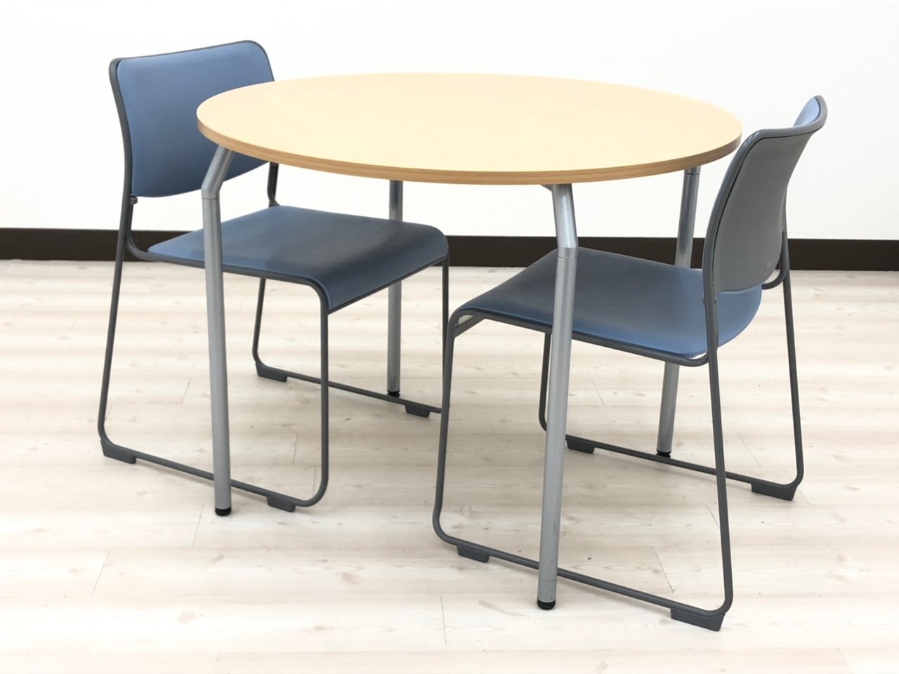 【テーブル+チェアセット】■イトーキ製・丸テーブルとナイキ製・スタッキングチェア 【限定1セット】【RP】- 埼玉本店