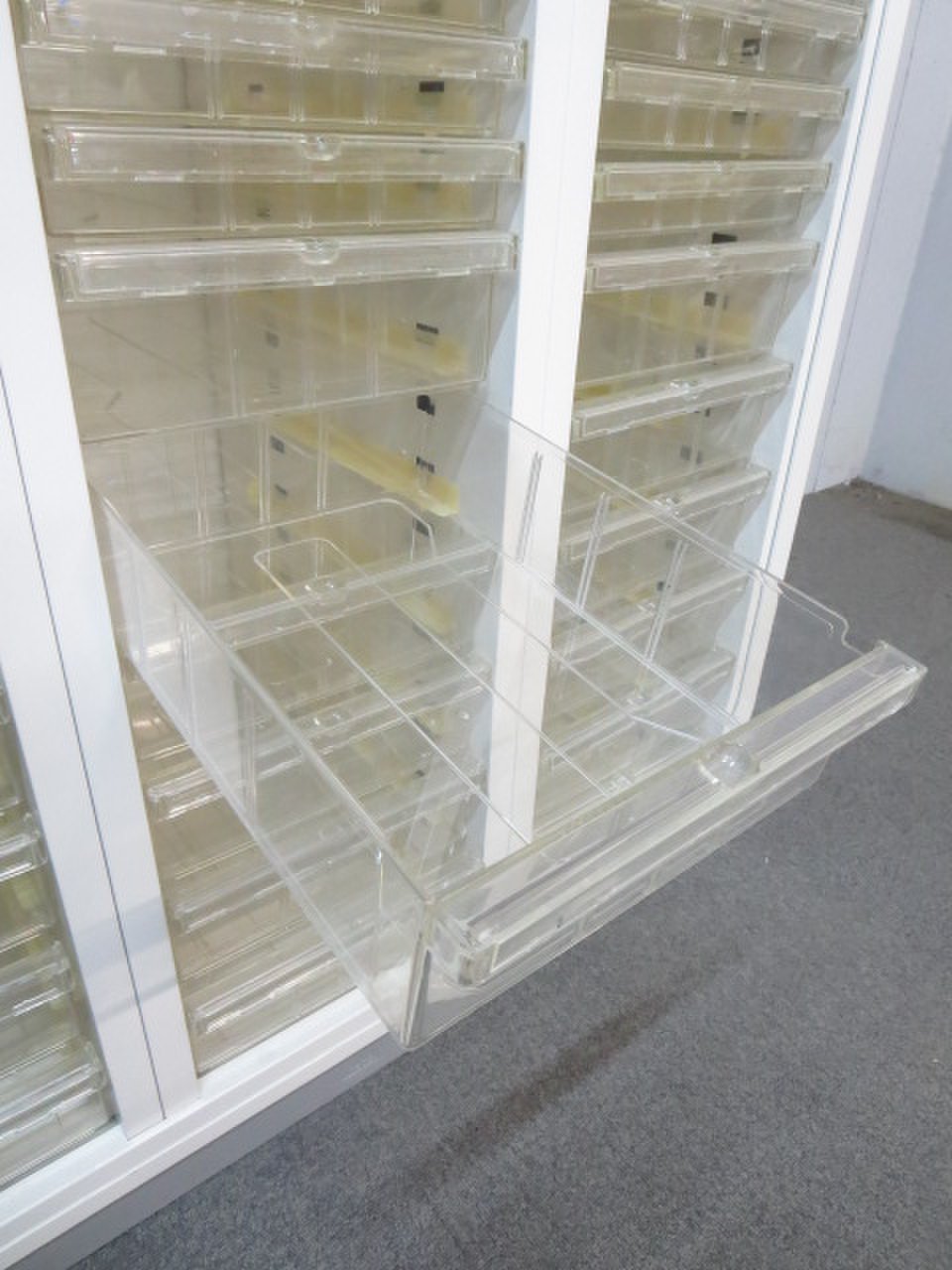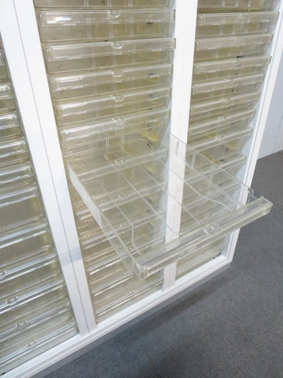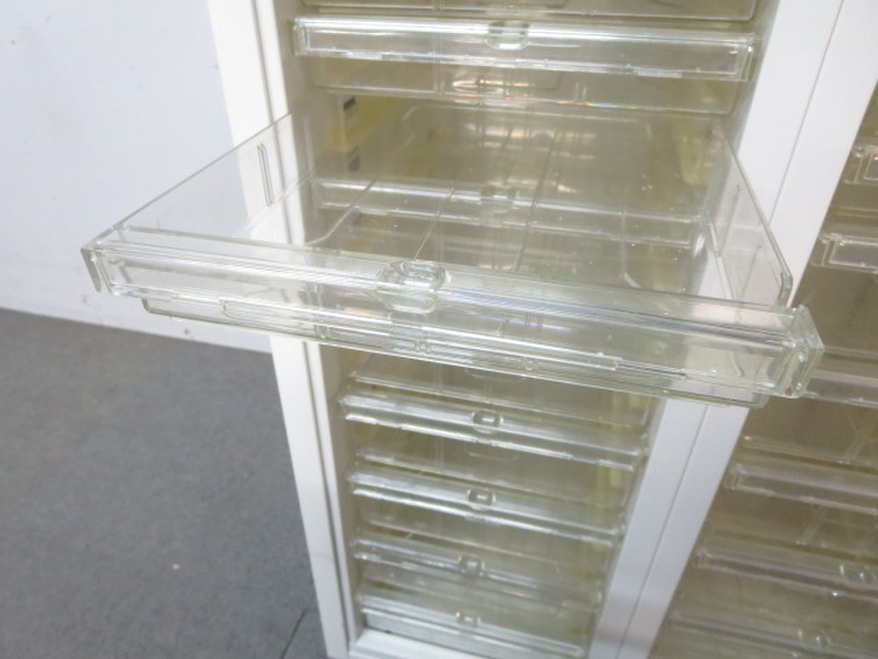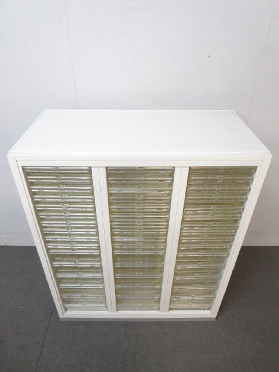 イナバ物置でもお馴染み、稲葉製作所製のクリスタルトレイキャビネットです。