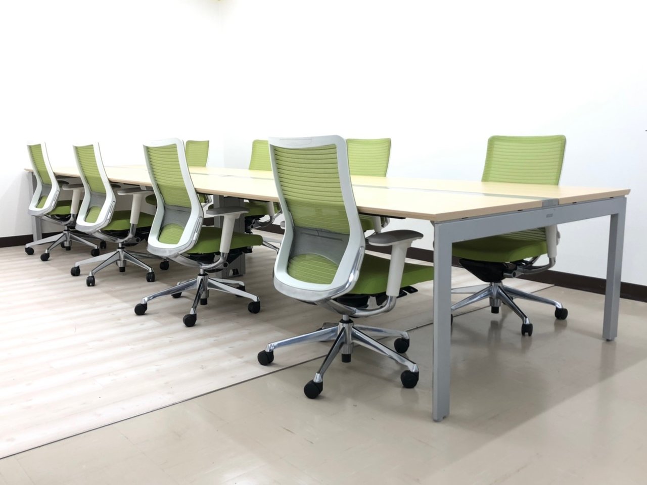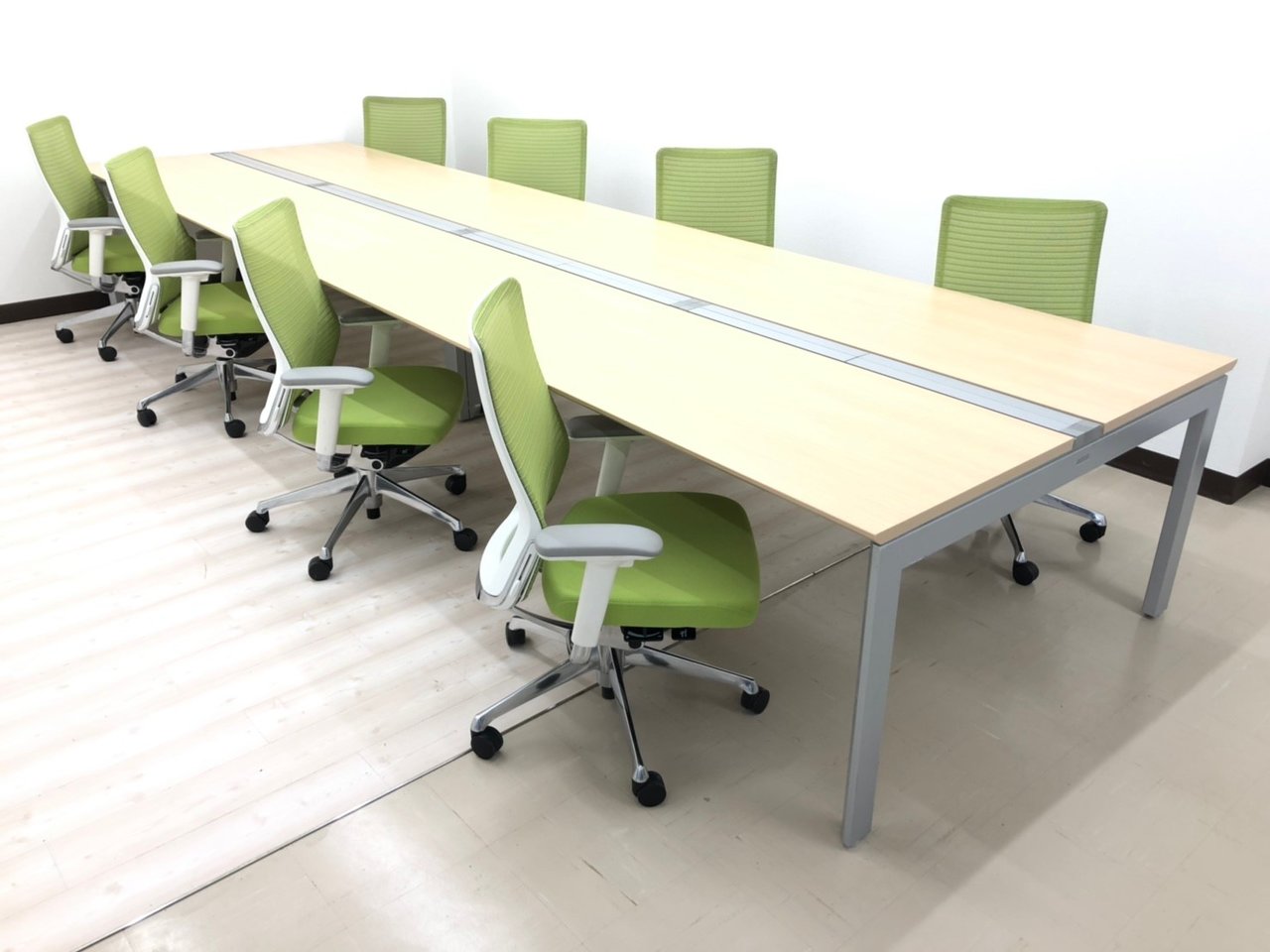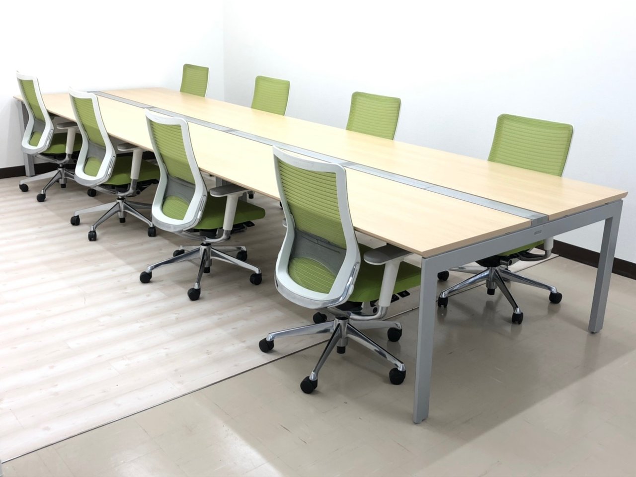 【倉庫在庫品】流行りのフリーアドレスデスク オカムラ プロユニットフリーウェイシリーズ ナチュラルカラー 幅4800㎜ 奥行1400 中古家具 オフィス家具 オフィスバスターズ心斎橋店 起業 入れ替え レイアウト変更 お引っ越し 事務所開設 ※チェアは別売りとなります