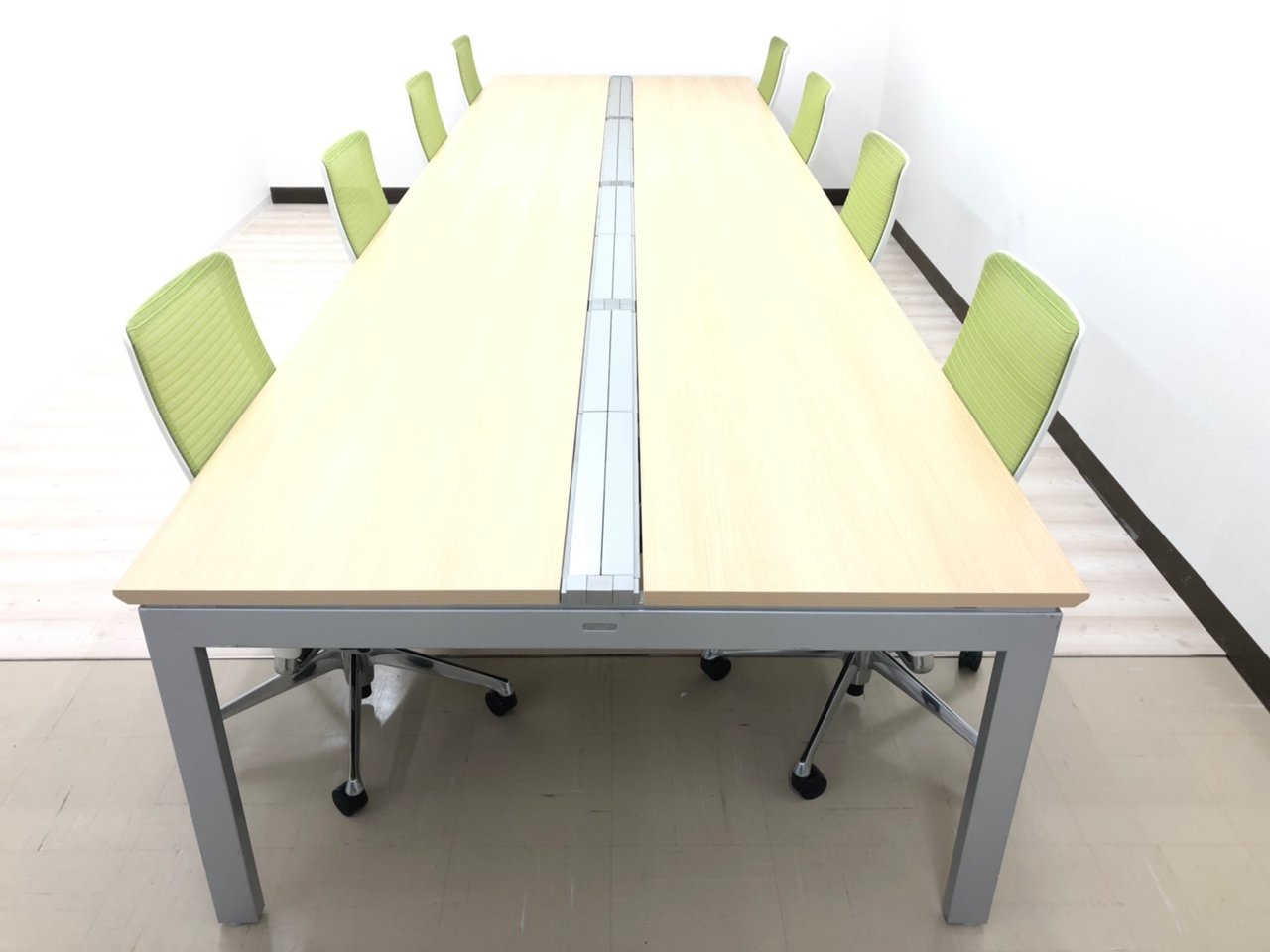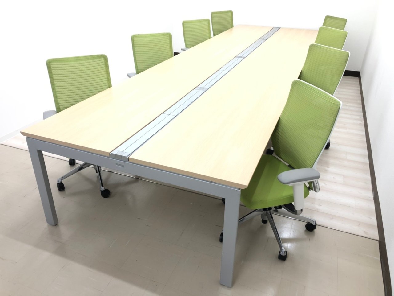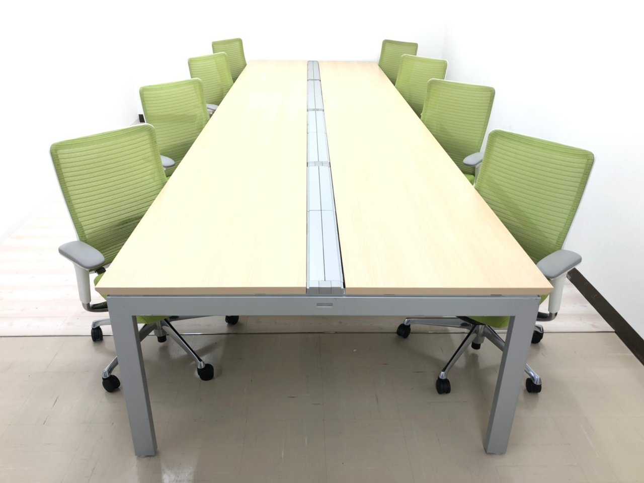 【限定1台】オカムラ プロユニットフリーウェイ フリーアドレスデスク W4800(2400+2400) D1400 天板:ネオウッドライド 脚:シルバー 8名掛け想定 1人当たりW1200の使いやすい定番サイズ