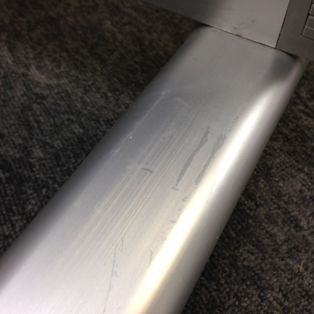 - 目立つ箇所あり傷・凹みが多数、深い傷・凹みが一部ある。(例、天板、正面、背部、サイド部分にある。)