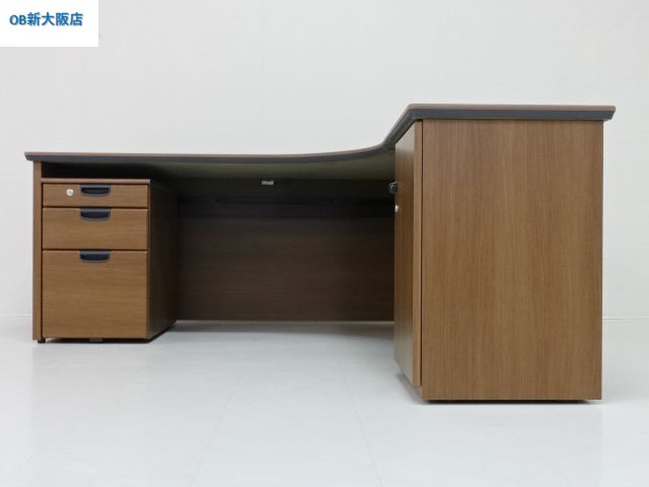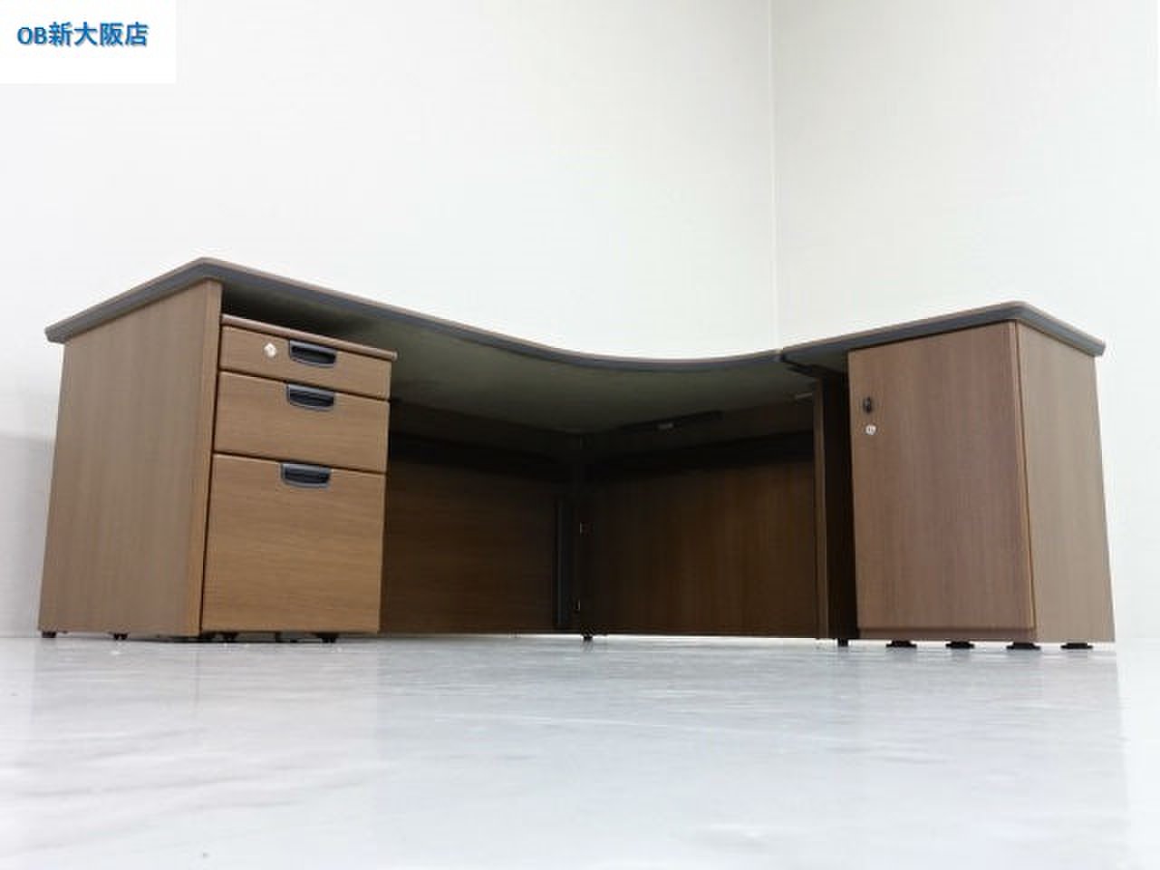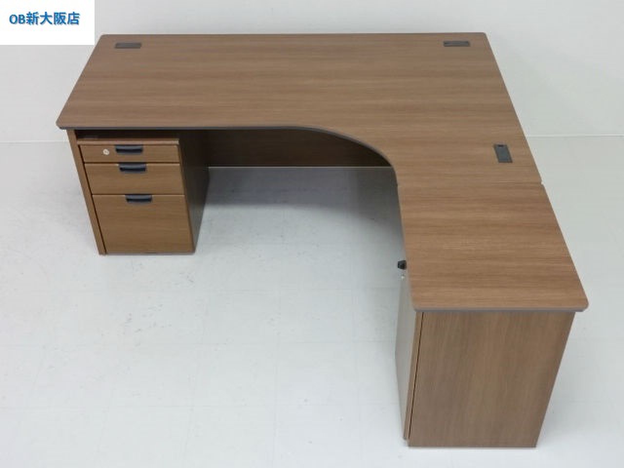 木製L型デスクが存在感抜群!ワゴン付き【RA】【地方倉庫在庫】- 新大阪店