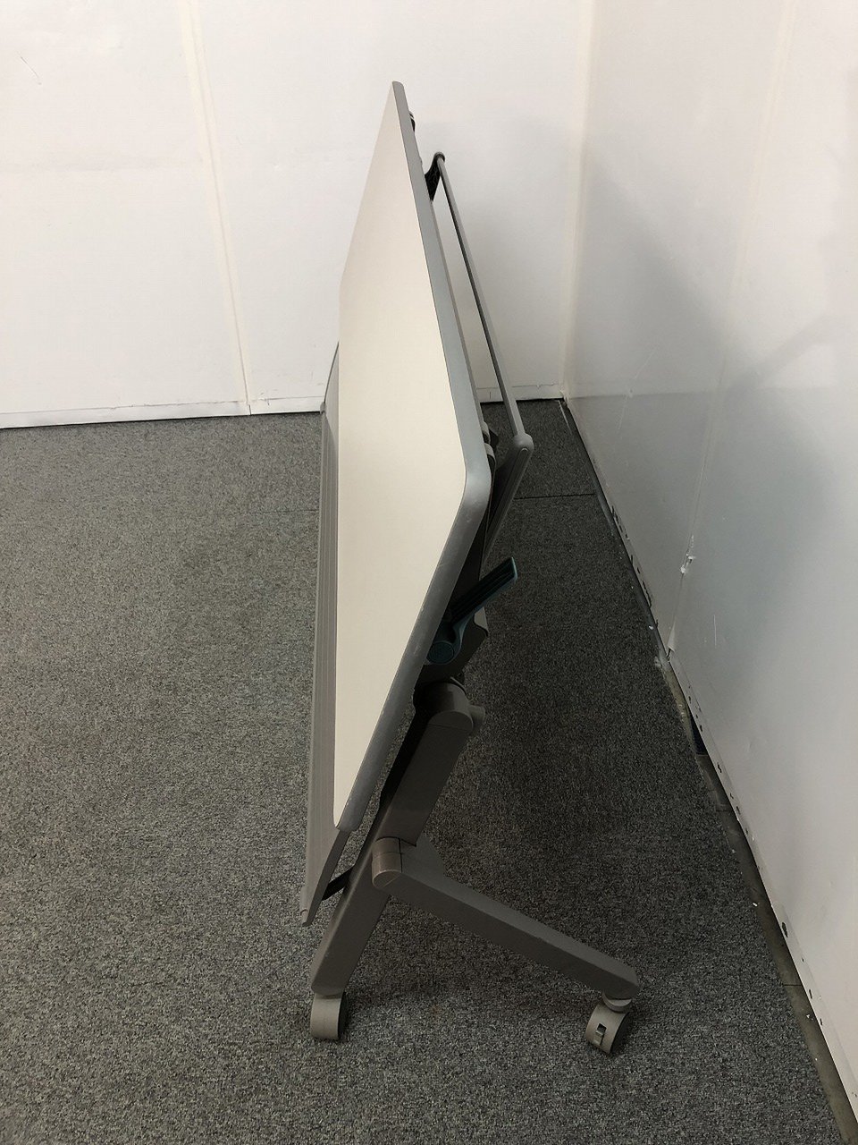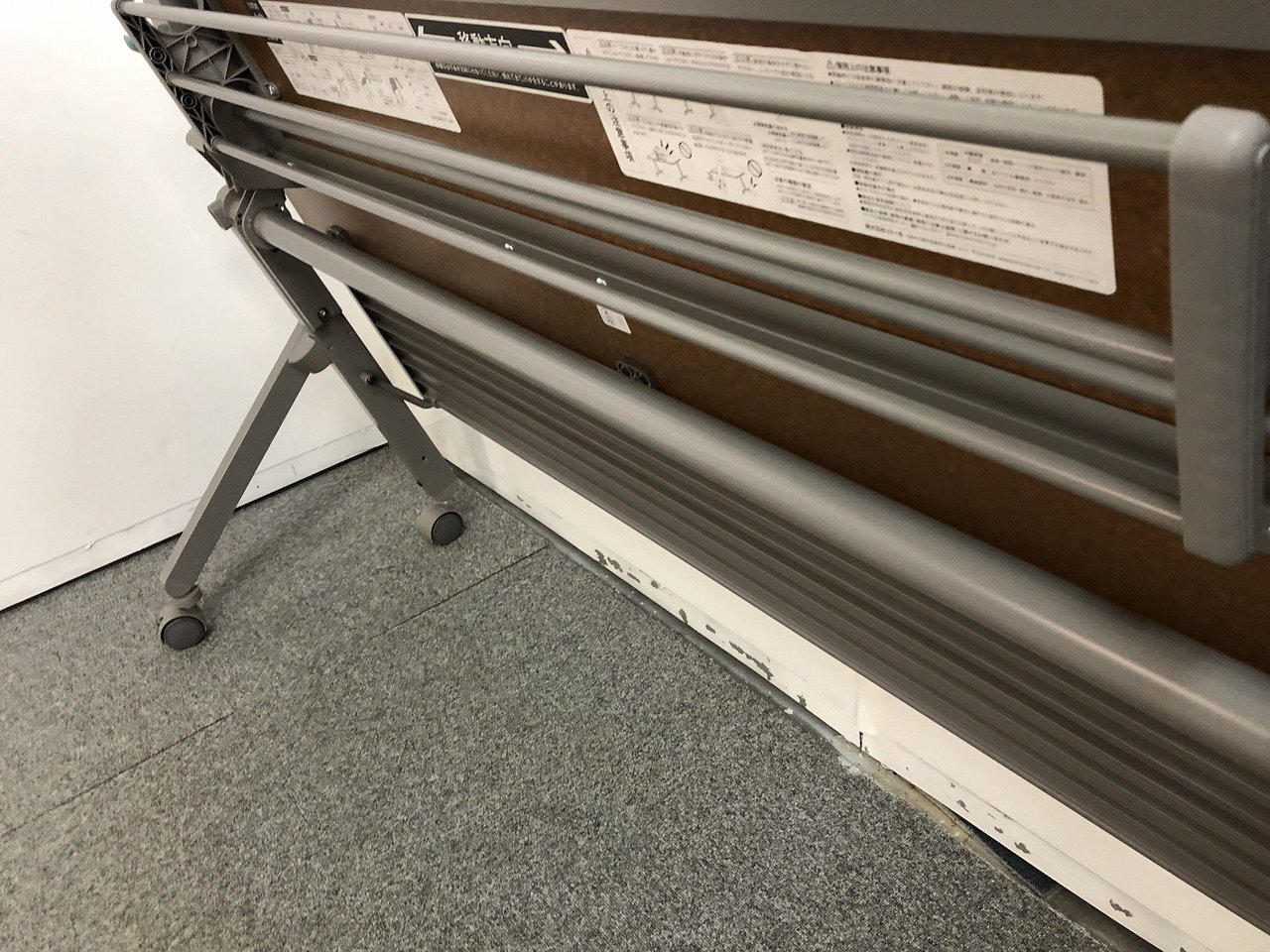- 一部不具合あり天板歪み、アジャスター無し、キャスター使用不可ようなそのテーブルの本来の効用を果たすための機能以外の一部が使用不可な状態。(例、キャスターロッ ク機能使用不可、棚板無し等がある。)