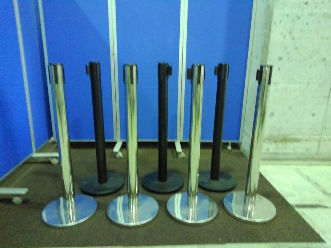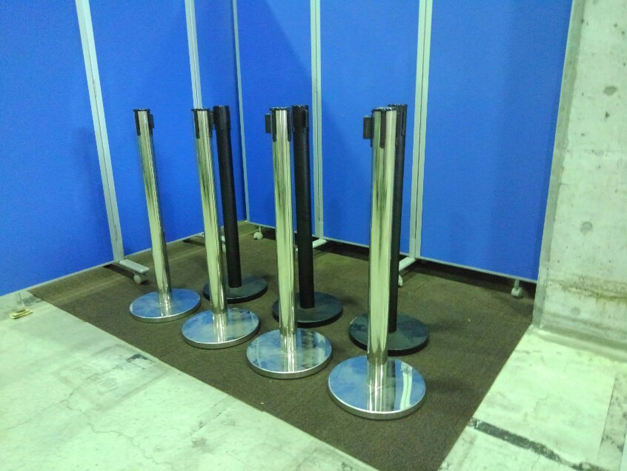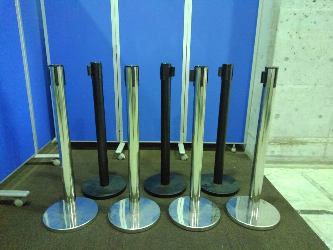 【7本1セット】ポールパーテーションが入荷致しました。 行列をコントロールする必需品!! ブラック色3本・シルバー色4本になります。 1セット限定ですので、ご了承下さい。 ※マテハン本舗の中古商品は、千葉県柏市に在庫がございます。- マテハン本舗
