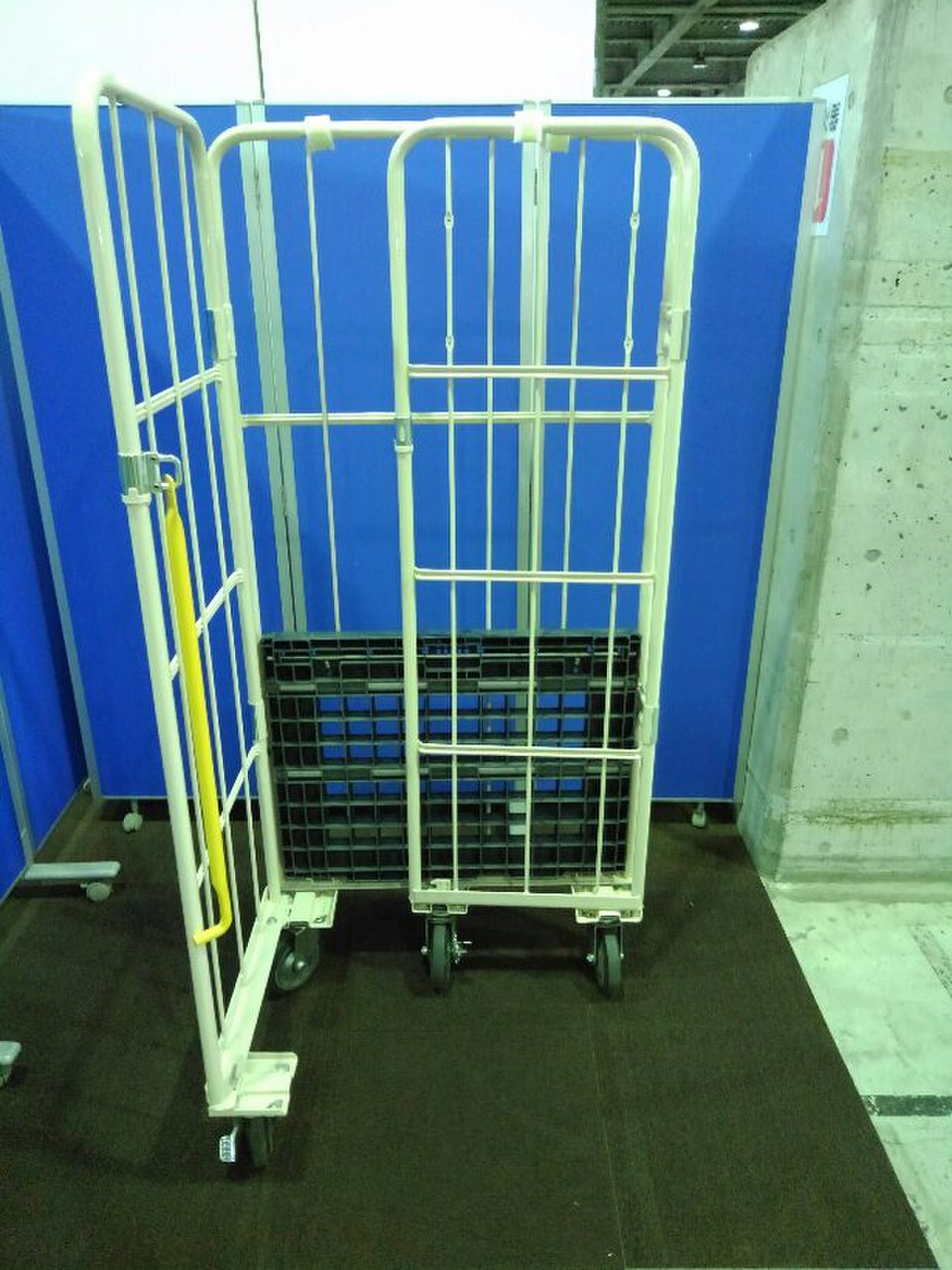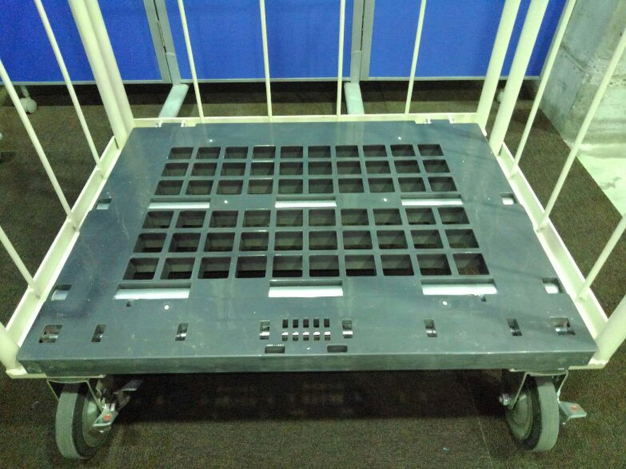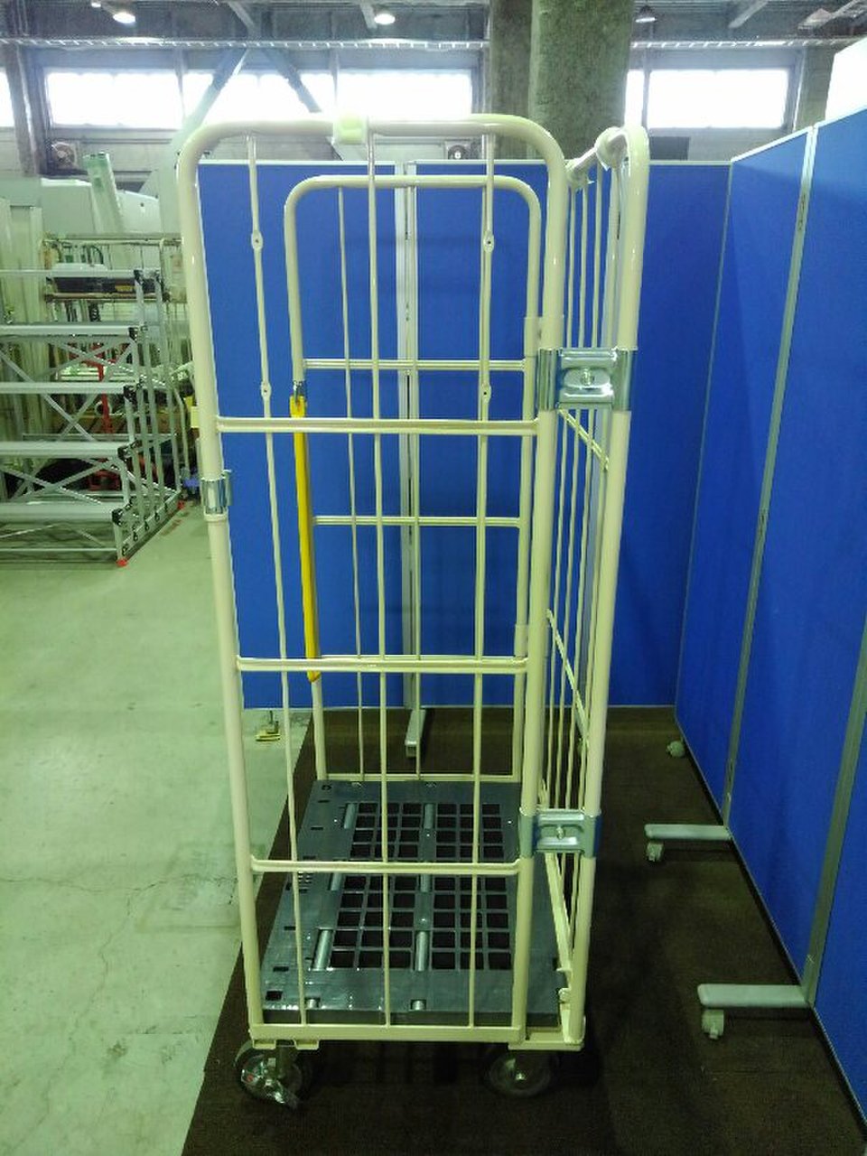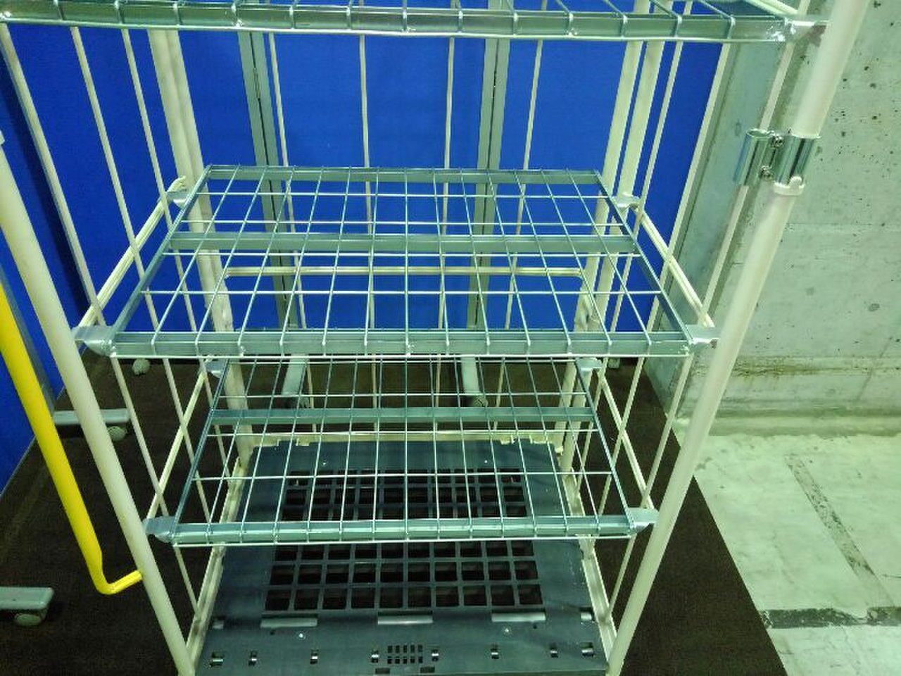 美品のカゴ台車が2台入荷致しました!! なんと、棚板3枚・前輪ストッパー付き。 マキテック製 底板樹脂 耐荷重:500kgまで ※マテハン本舗の中古商品は、千葉県柏市に在庫がございます。- マテハン本舗