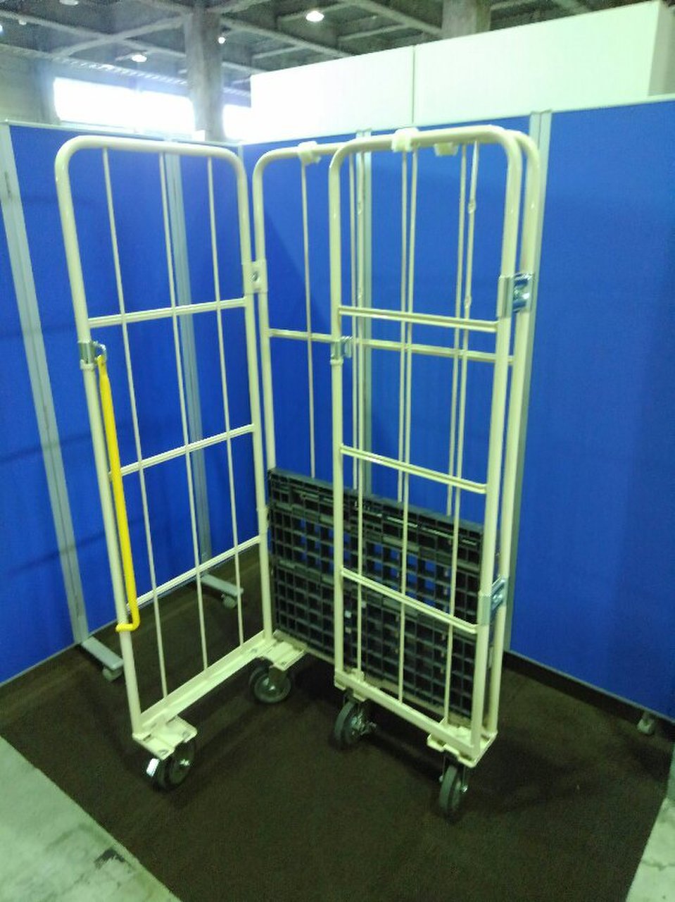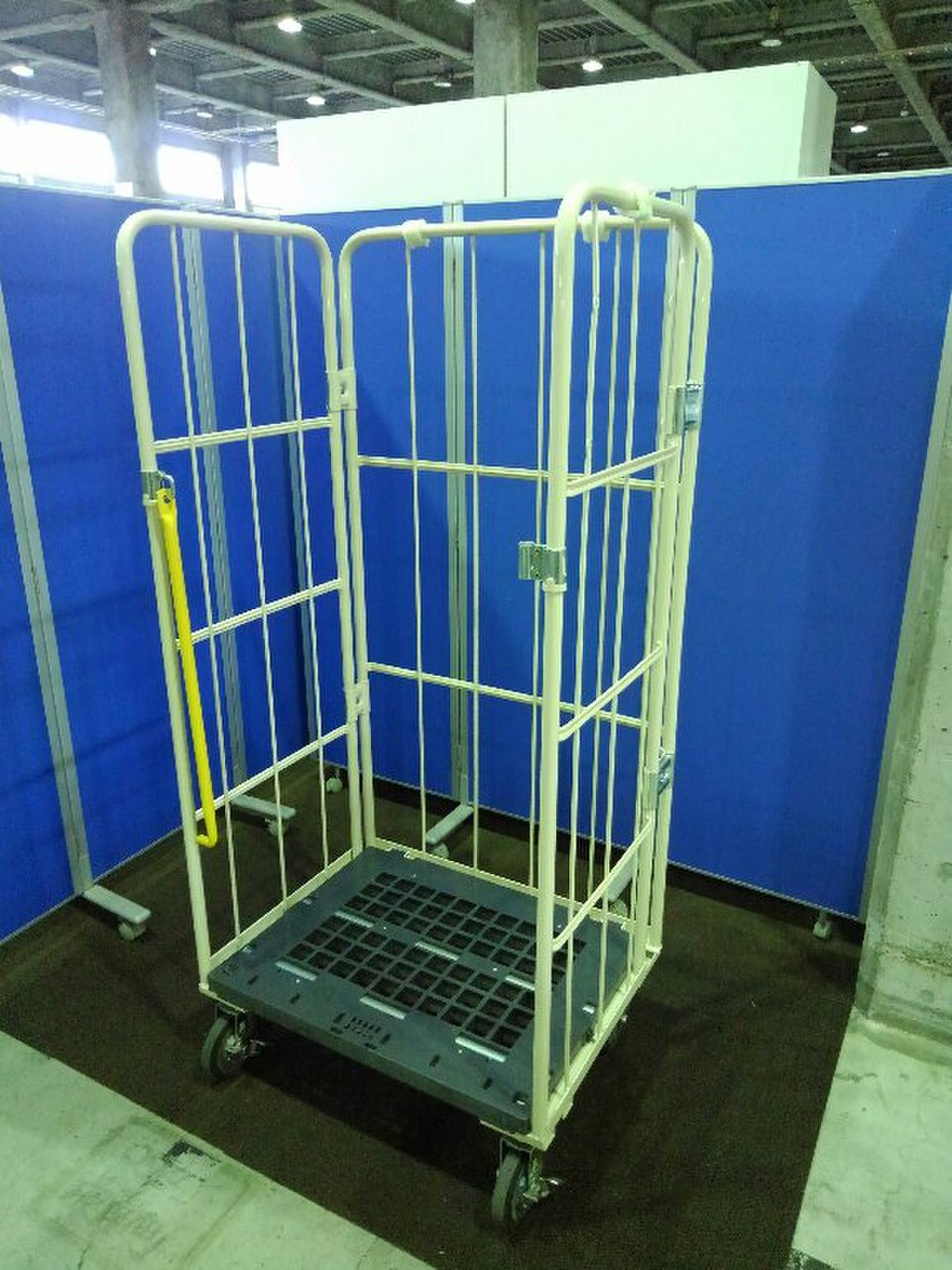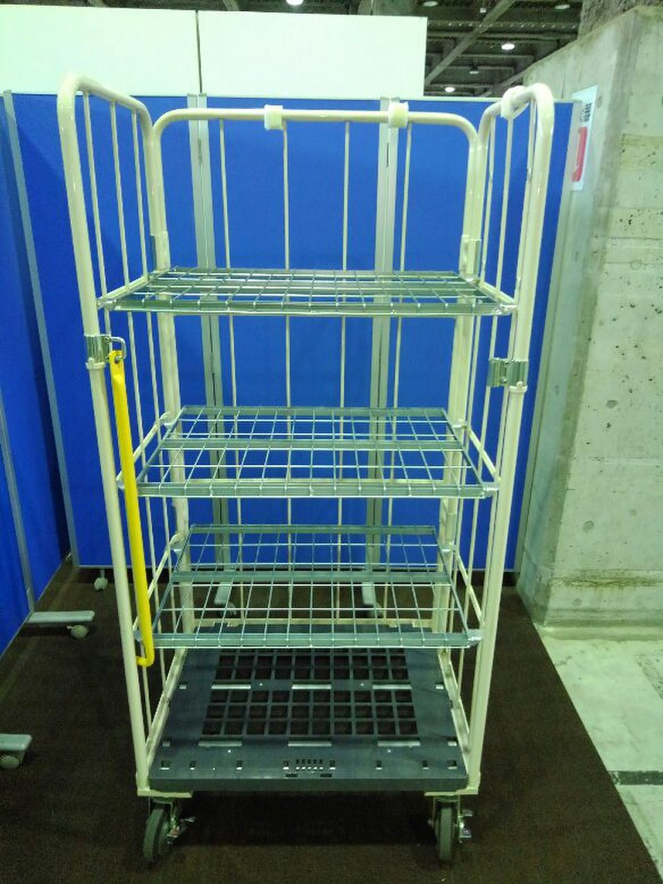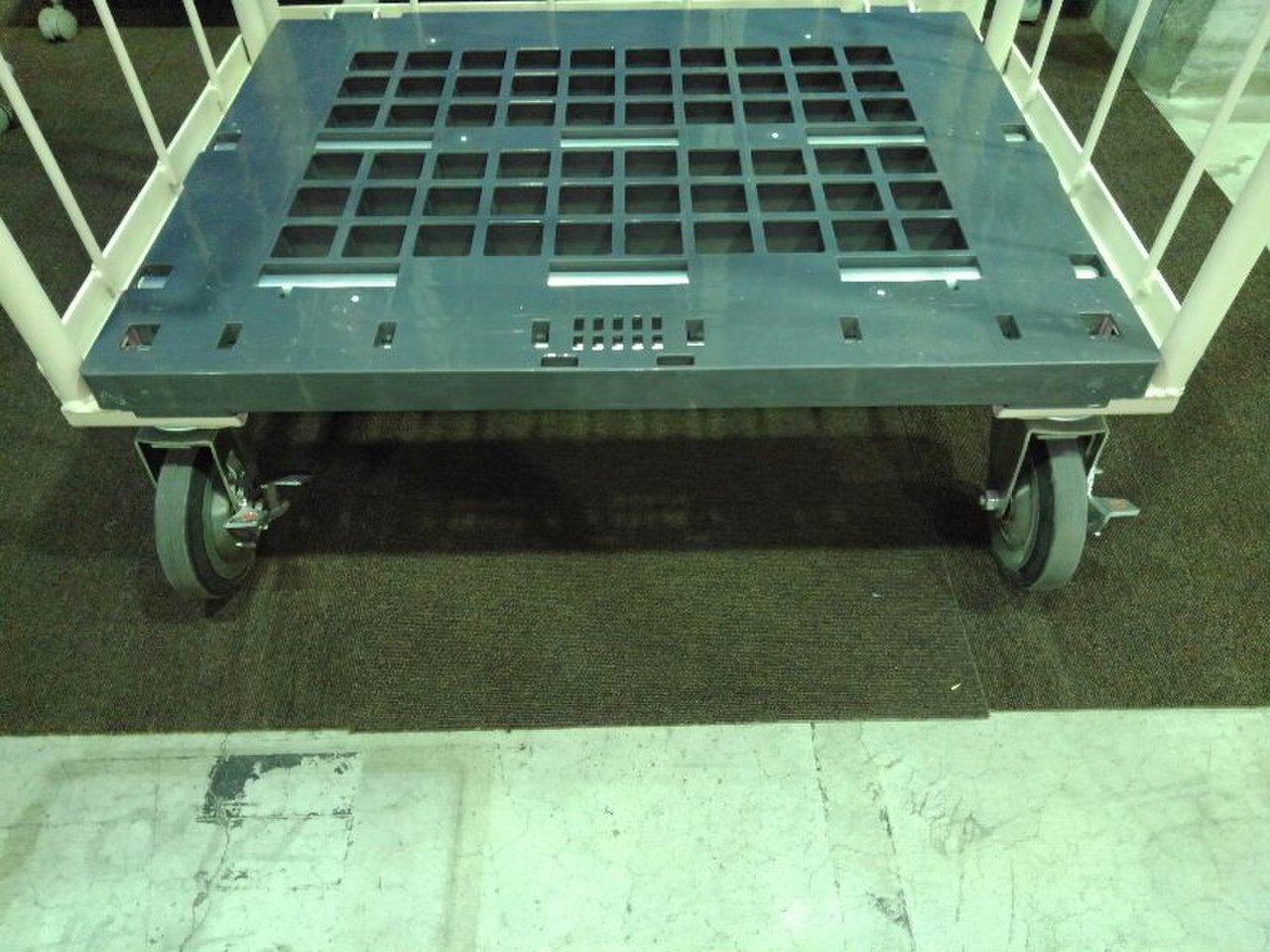 美品のカゴ台車が2台入荷致しました!! なんと、棚板3枚・前輪ストッパー付き。 マキテック製 底板樹脂 耐荷重:500kgまで ※マテハン本舗の中古商品は、千葉県柏市に在庫がございます。- マテハン本舗