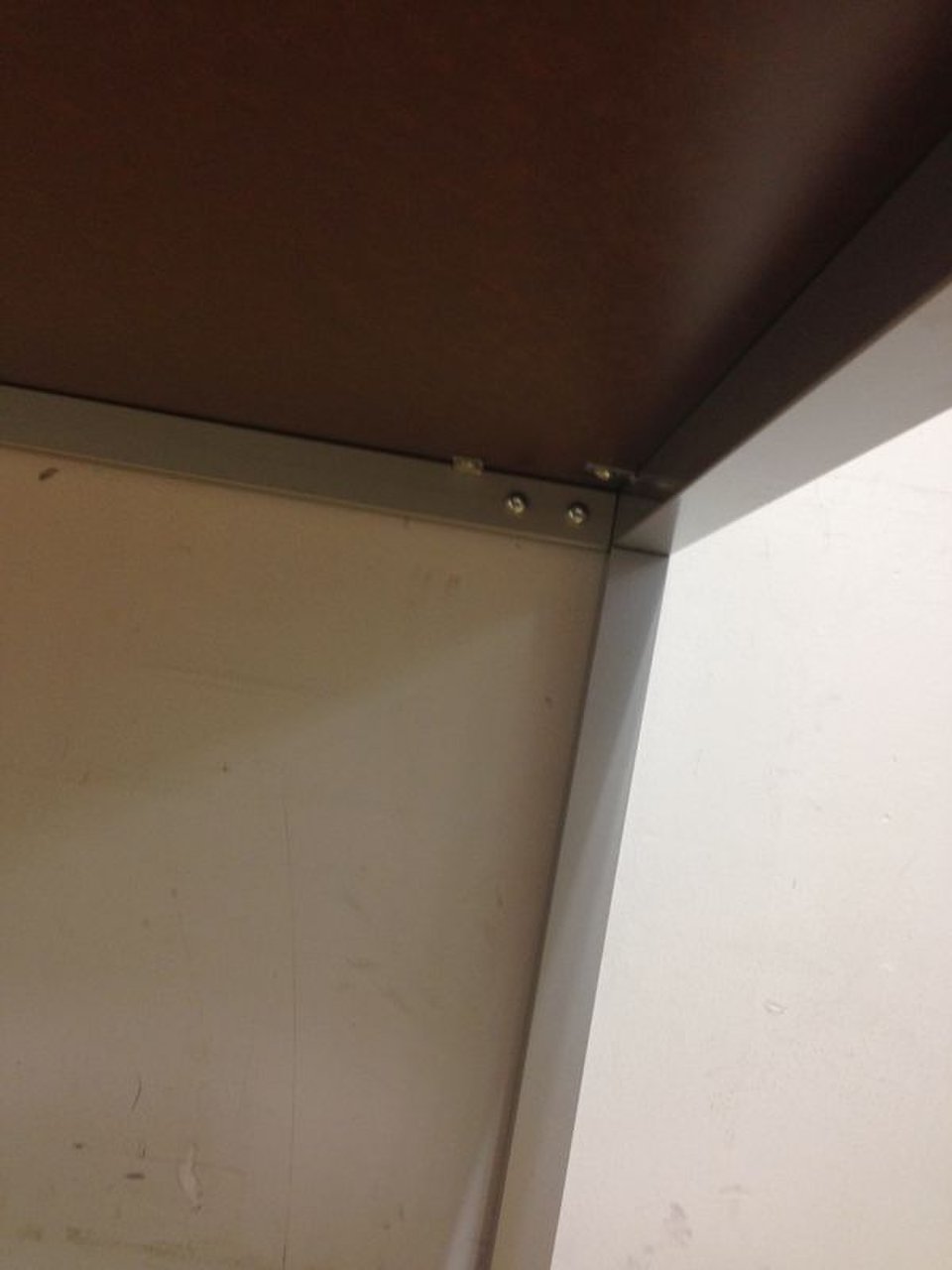 - かなり強い濃い黄ばみ・変色が商品全体にある。(例、天板、幕板、棚板、サイド部分、脚部等にある。)