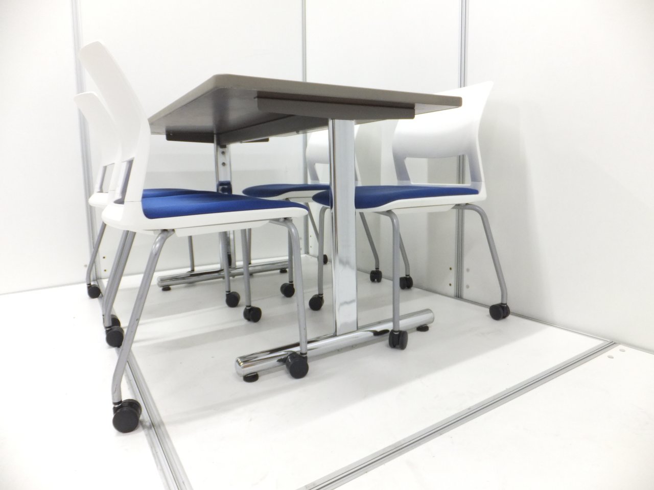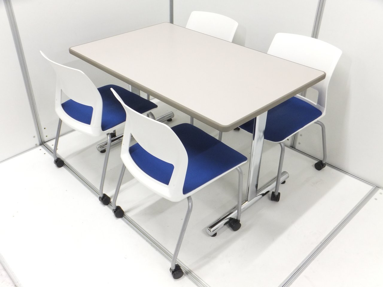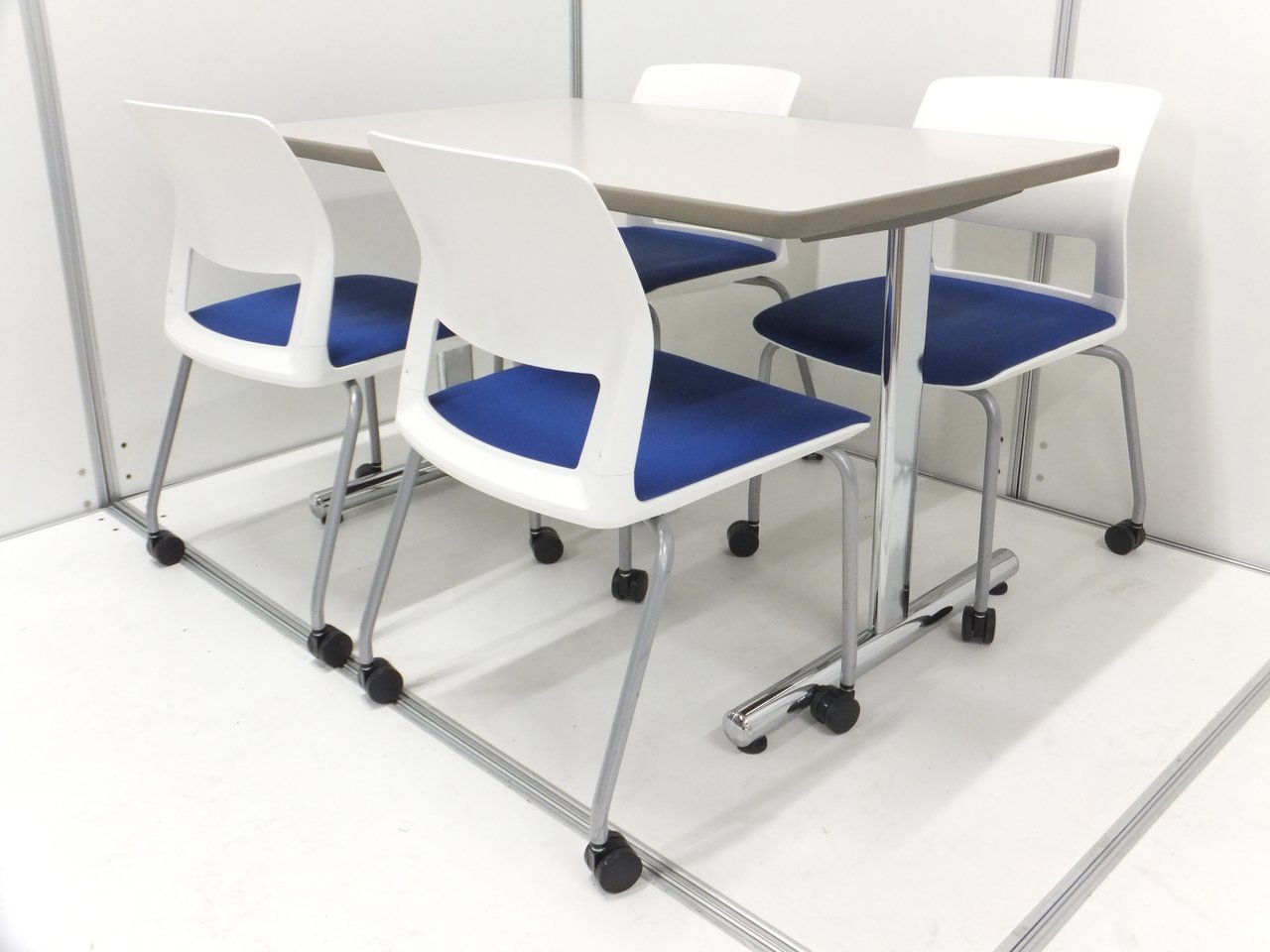 【テーブルチェア4脚セット】 青白キャスターチェアと1200テーブルがセットで!- 立川・八王子店