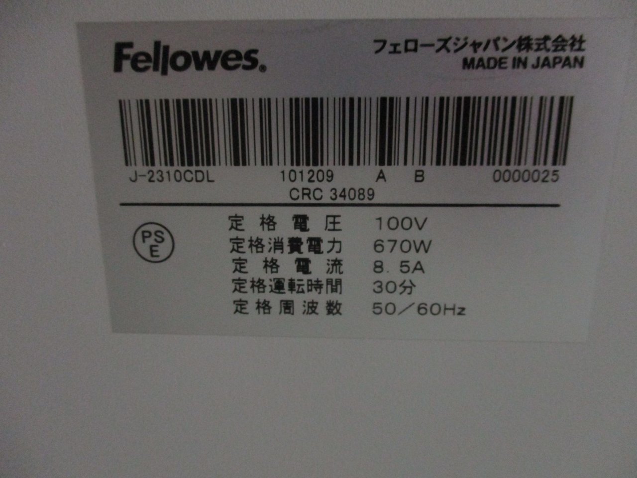 【フェローズ オフィス用シュレッダー J-2310CDL 】スパイラー方式でLED操作パネル、くず量表示メーターを装備したハイ・パフォーマンスモデル!!- 足立・葛飾店
