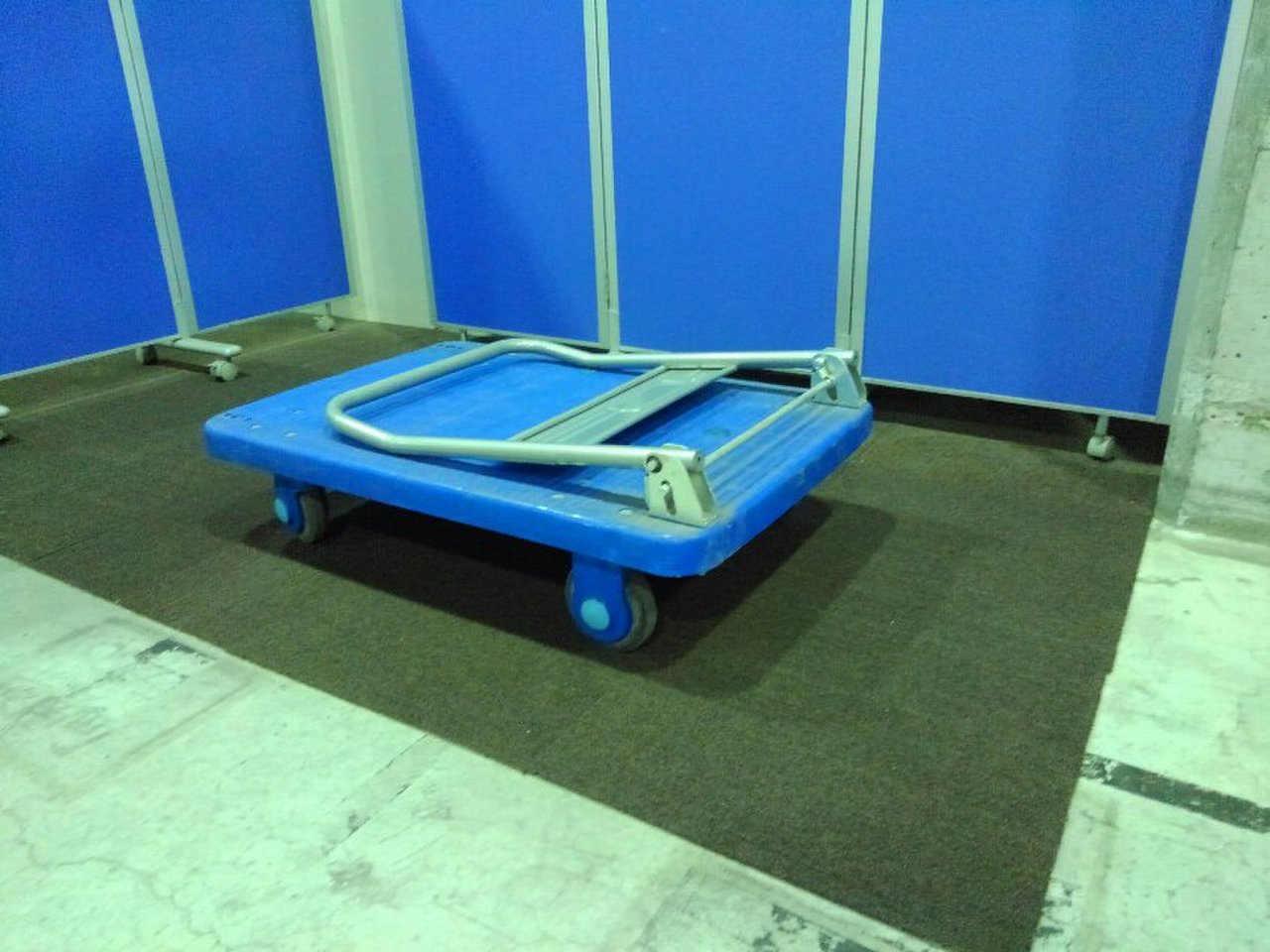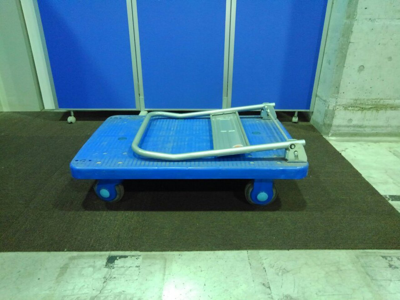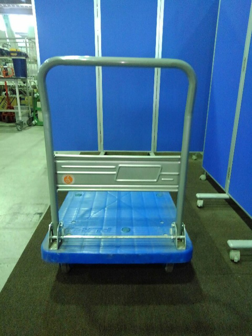 大型台車が入荷致しました!! 軽量ラックへの荷物の積み込み、軽量ラックからの荷卸しの際に役立ちます。 積載荷重:300kg 折り畳み式 ※マテハン本舗の中古商品は、千葉県柏市に在庫がございます。- マテハン本舗