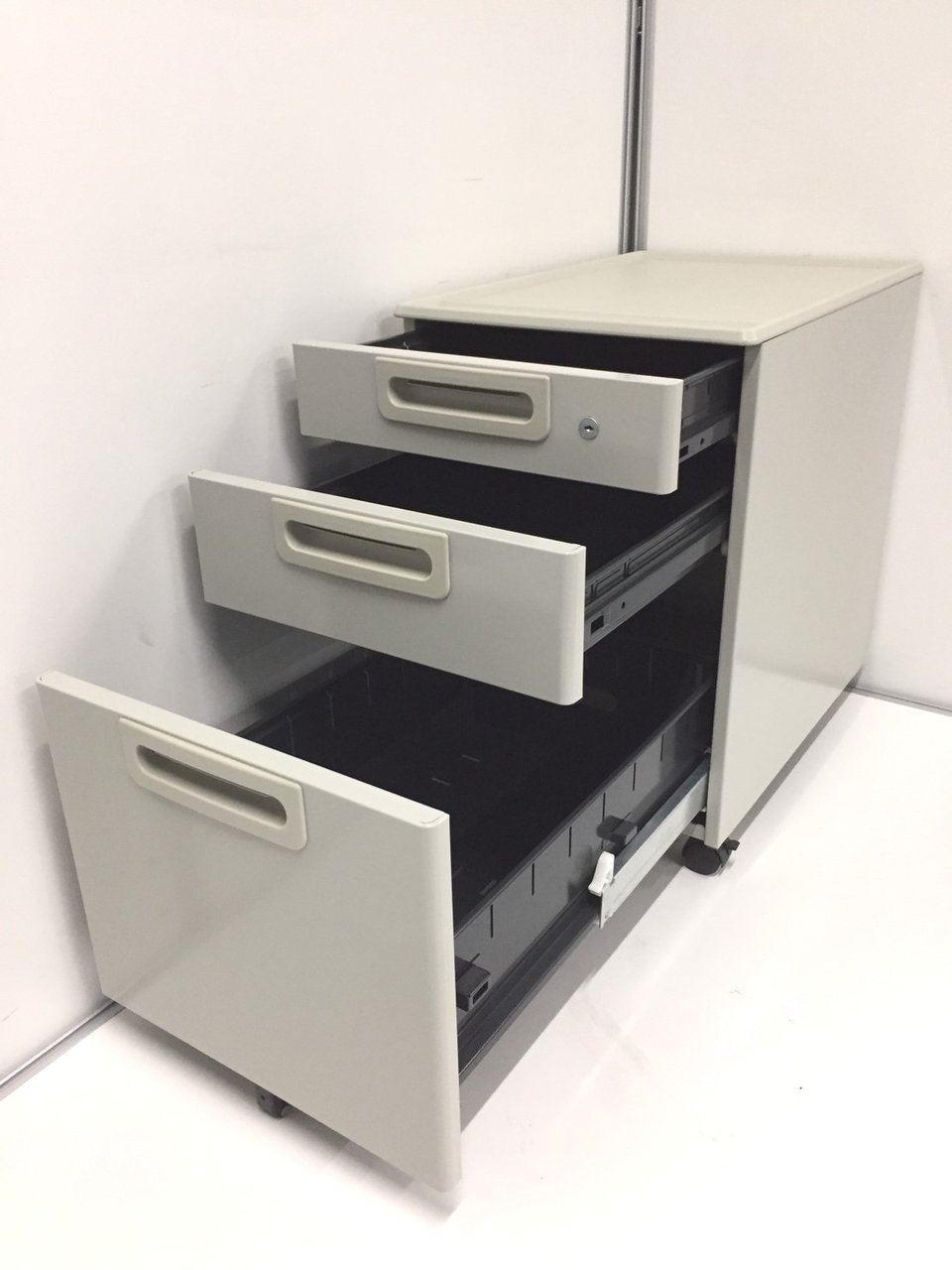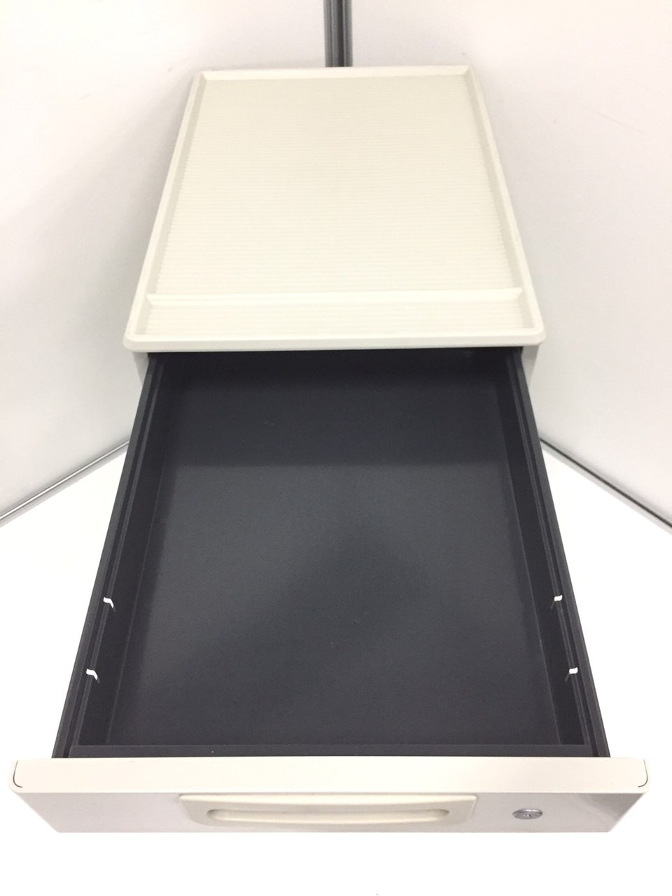 - 一部不具合ありその脇机・ワゴンの本来の効用を果たすための機能以外の一部が使用不可な状態。(例、引出が開閉しづらい、 キャスターロック機能使用不可、ラッチ不良 等がある。)