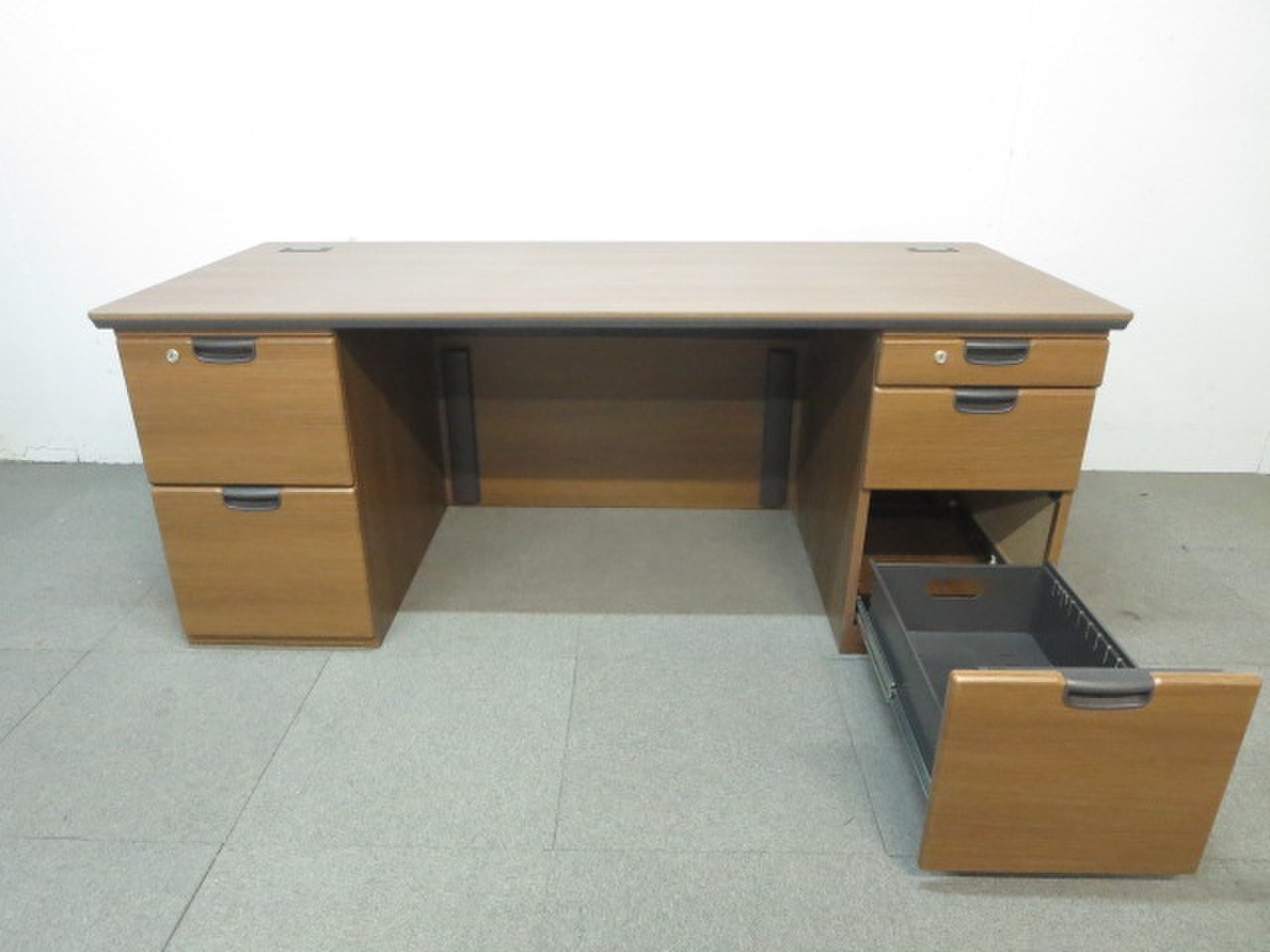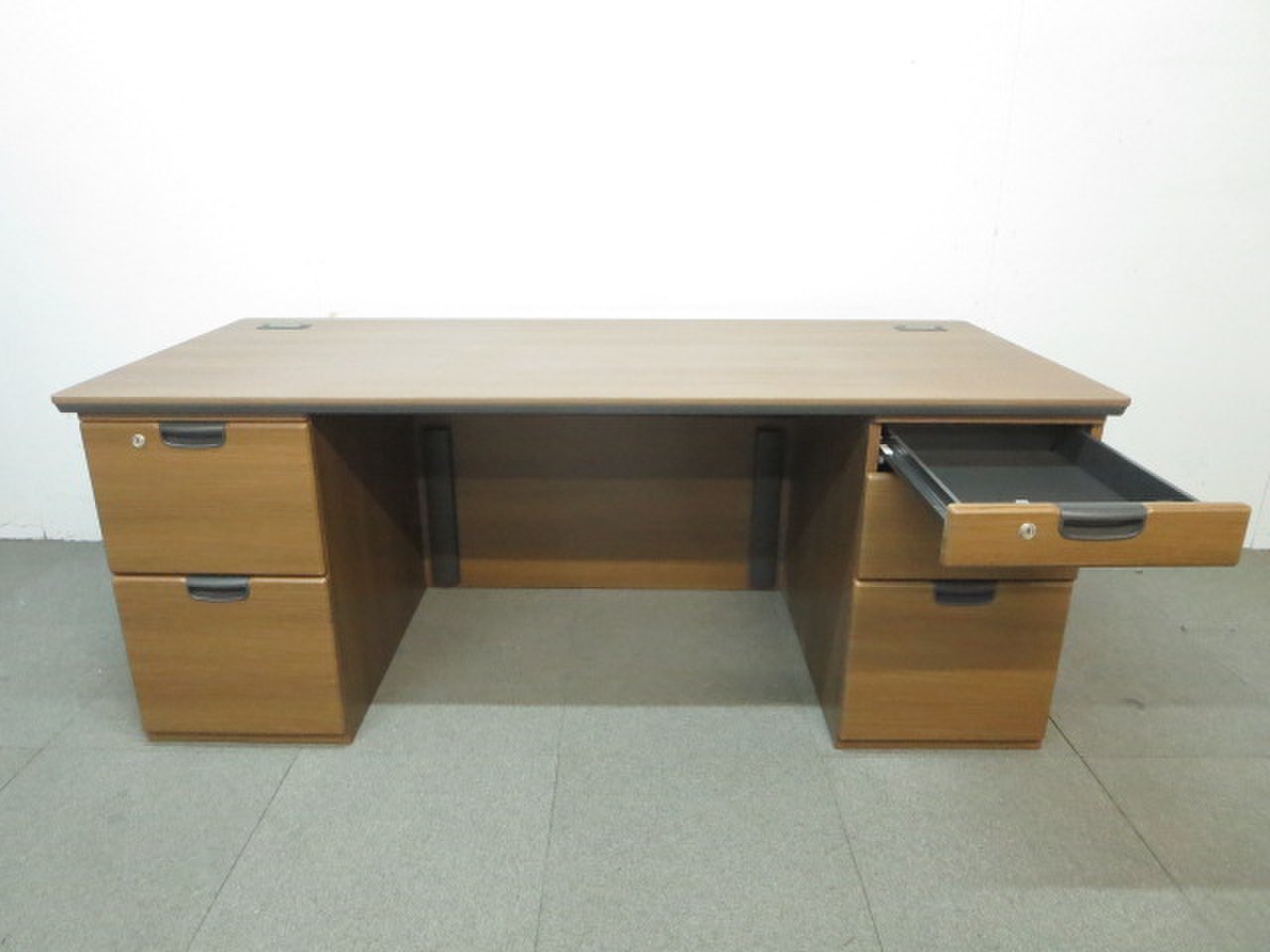 ■オカムラ製 役員用木製両袖机 ■W1800mmタイプ ネオウッドダーク【※引出し歪みあり】- 川崎店