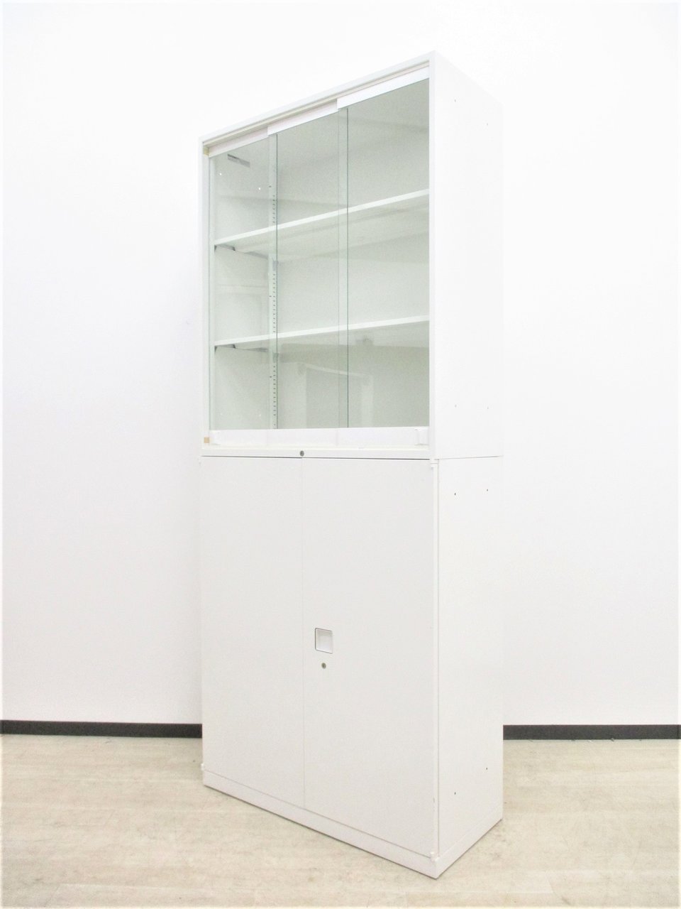 レクトラインシリーズ【限定1台!】大人気のガラス書庫です!なんと上段もラッチ、カギ付きです!- つくば店