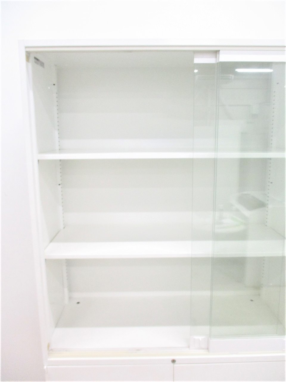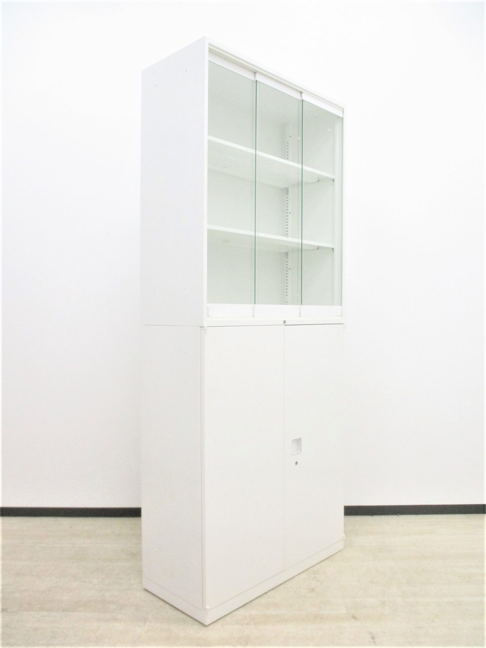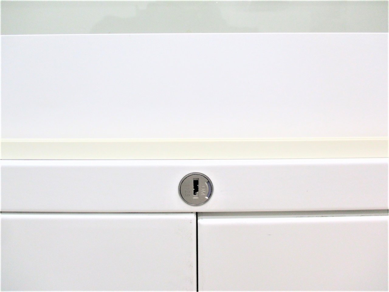 スライド式の扉+引き出しタイプの便利な書庫セットが入荷!使い勝手抜群のハイキャビネットが入荷! ■オカムラ/レクトライン/ホワイト 2枚引き戸+3段ラテラルキャビネット