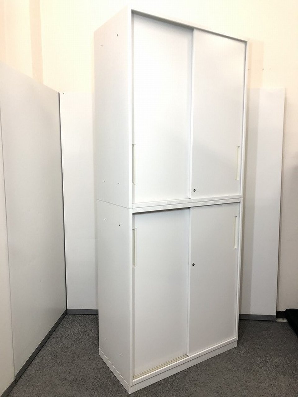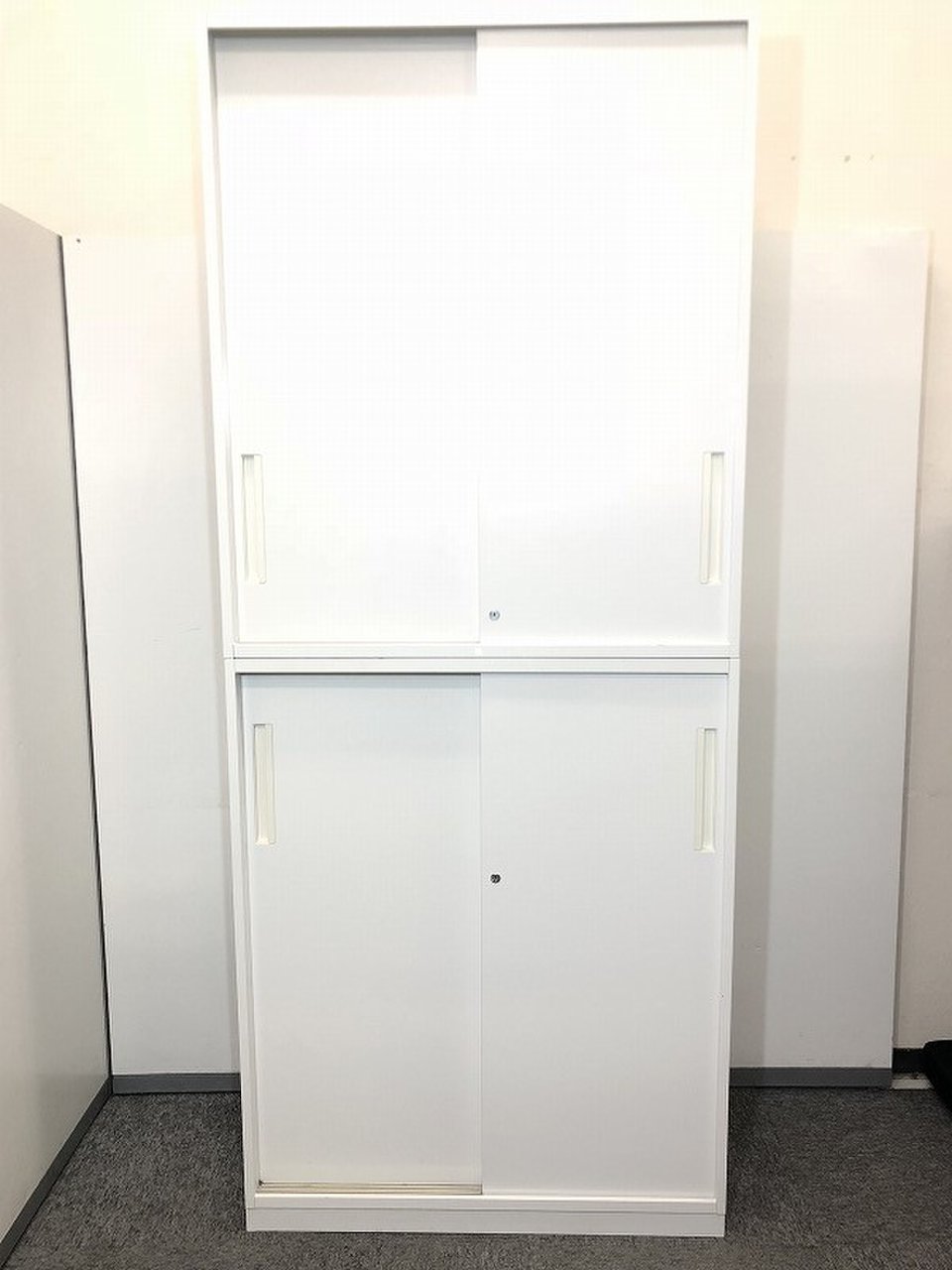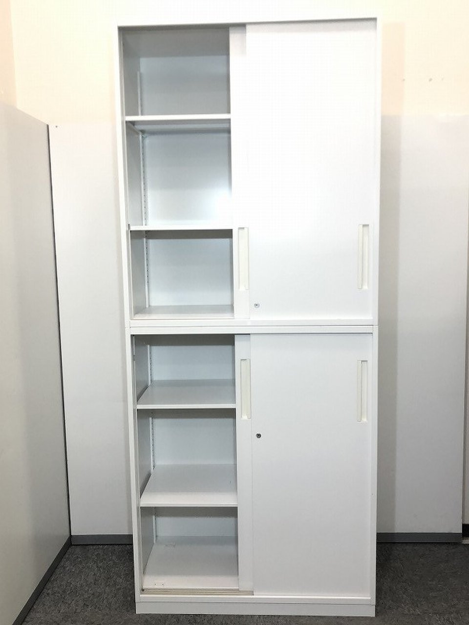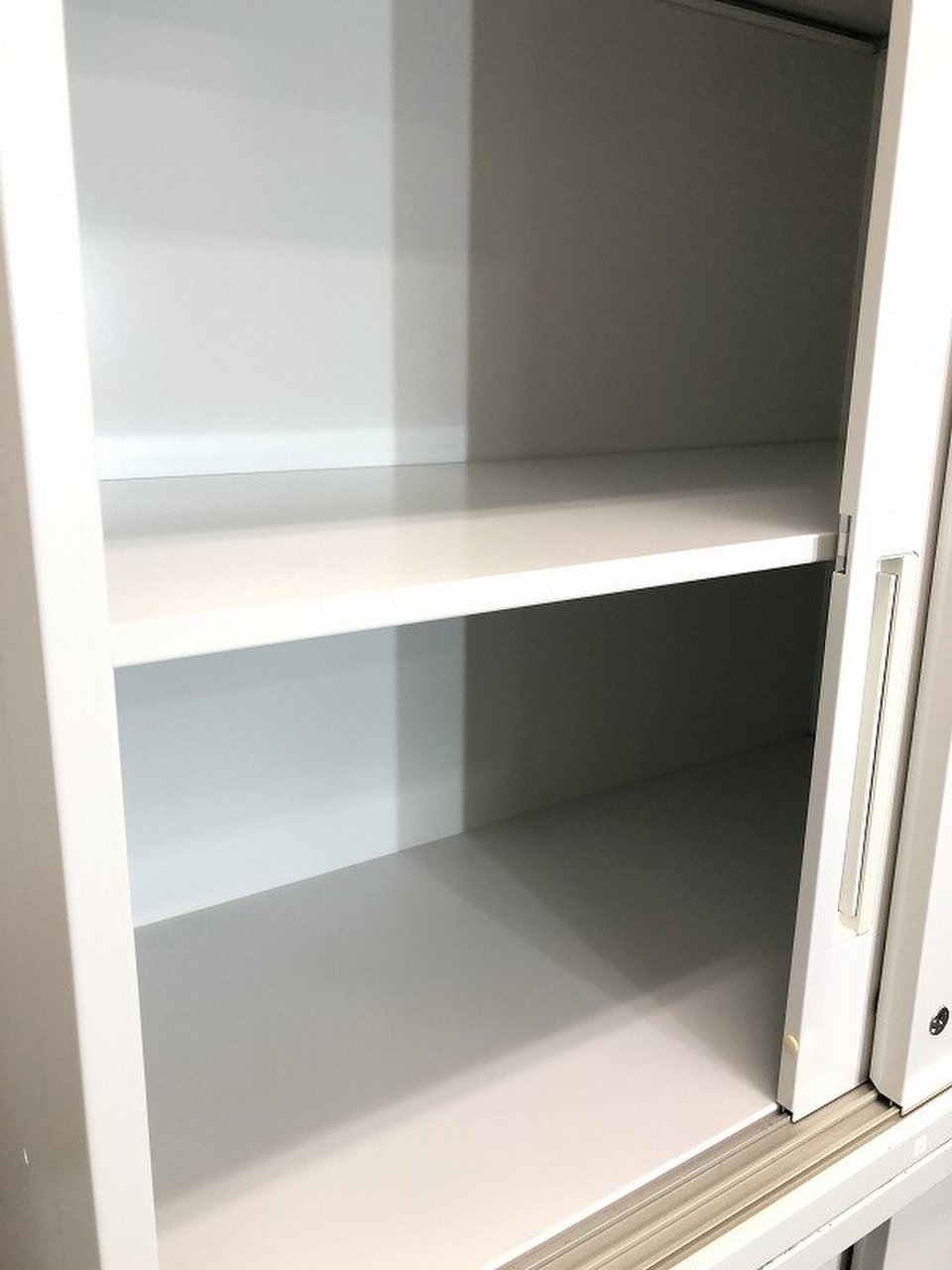 【スライド扉でスペースを有効活用!】■ウチダ(UCHIDA) HSシリーズ 引戸書庫 ホワイト ※取っ手に日焼けあり