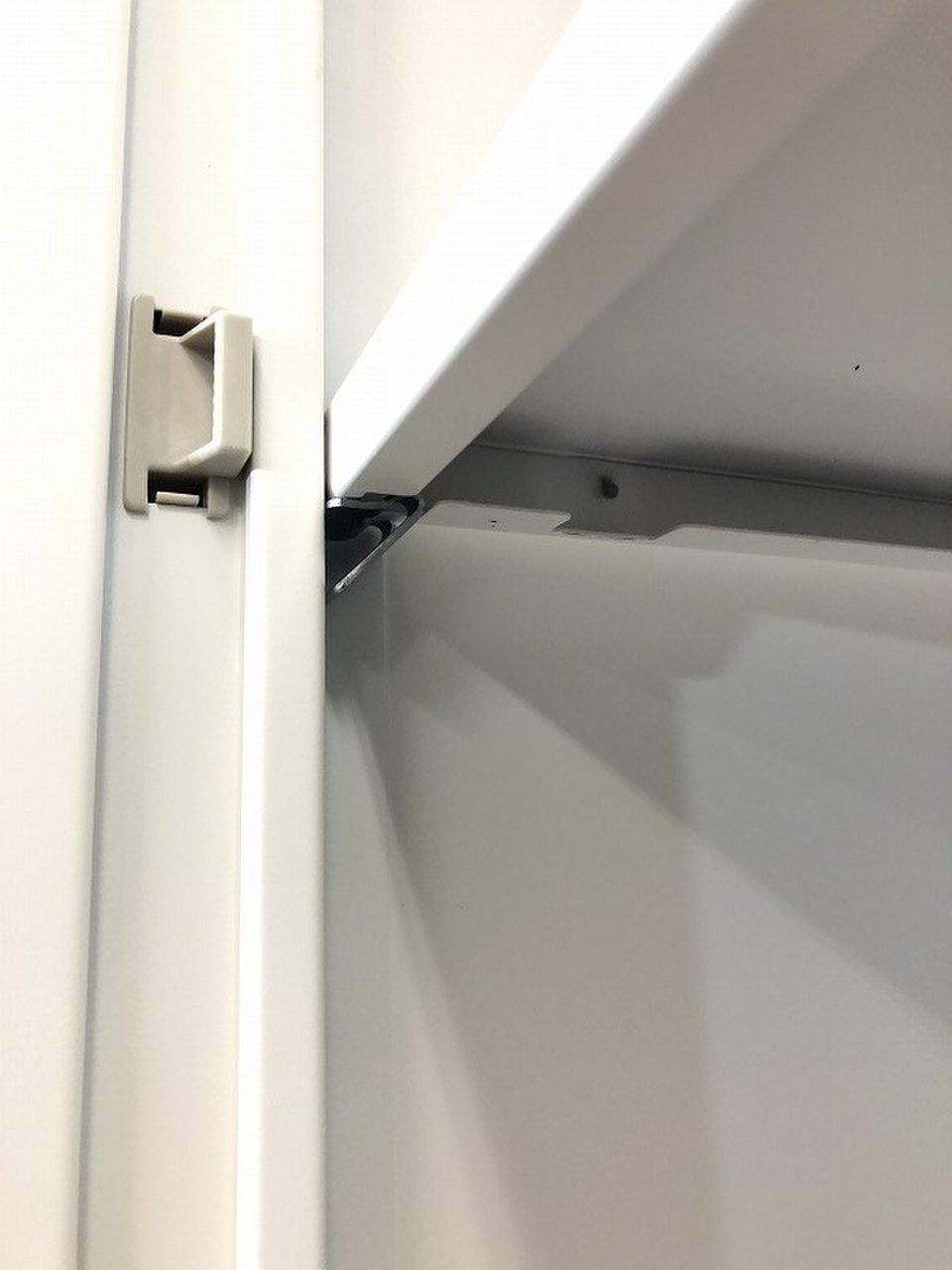 - 扉や引出しに、ラッチ機構を装備。地震時に勝手に扉や引出しが開き、収納物がユニットから飛び出すのを抑制します。