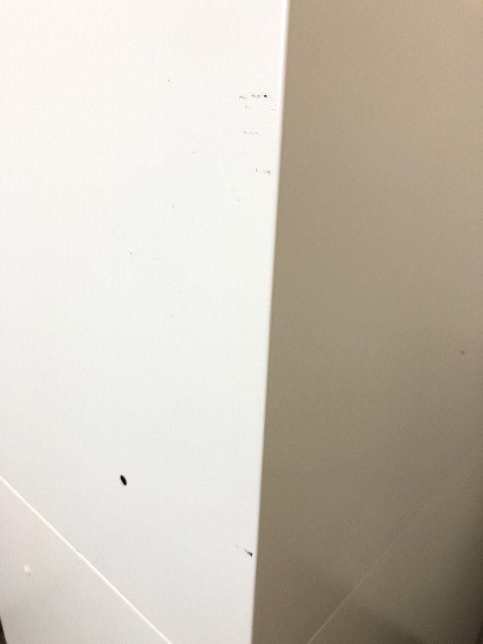 - 目立つ箇所あり傷・凹みが多数、深い傷・凹みが一部ある。(例、天板、正面、背部、サイド部分にある。)
