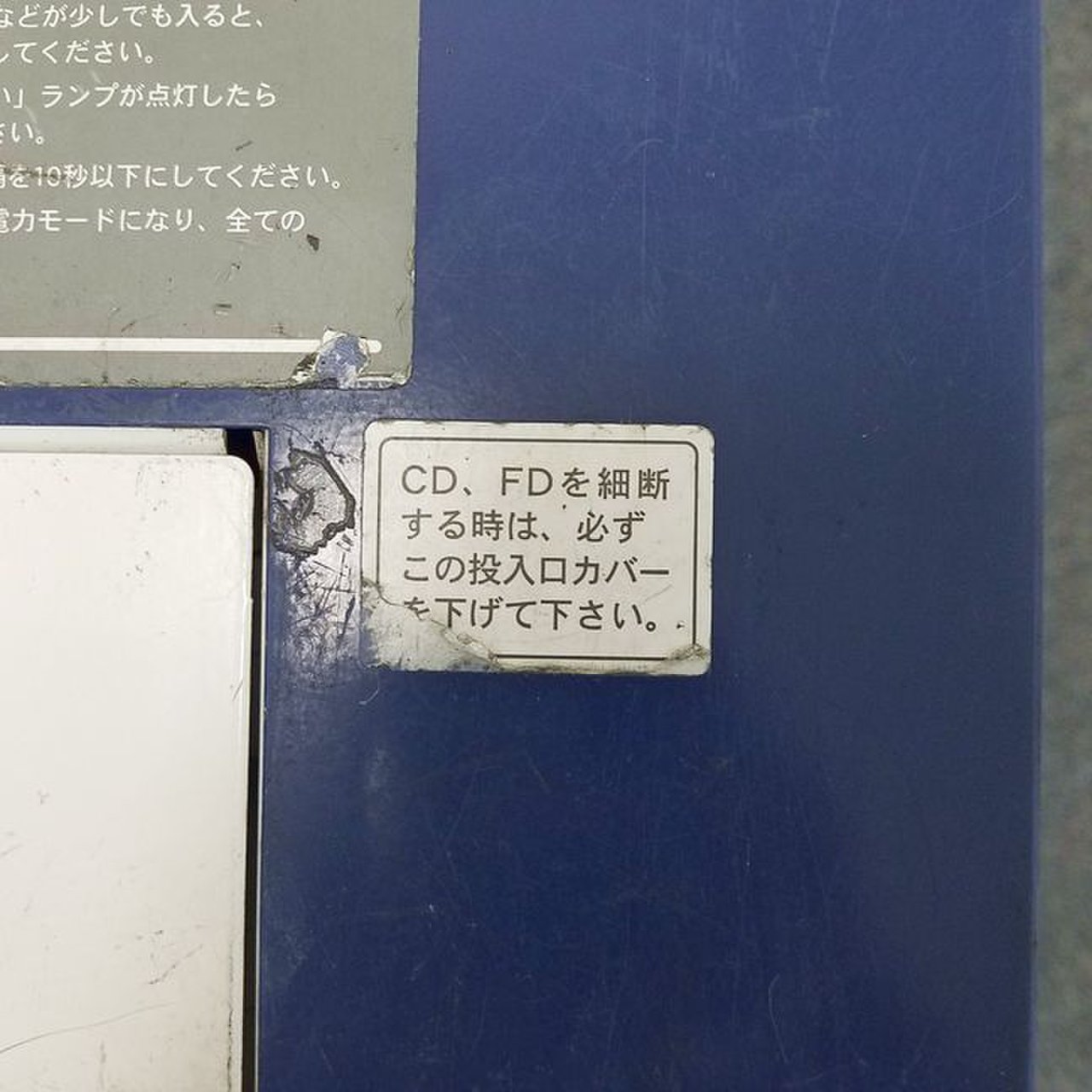 投入口のカバーでデータメディアなどの細断片が飛び出ないようにします。