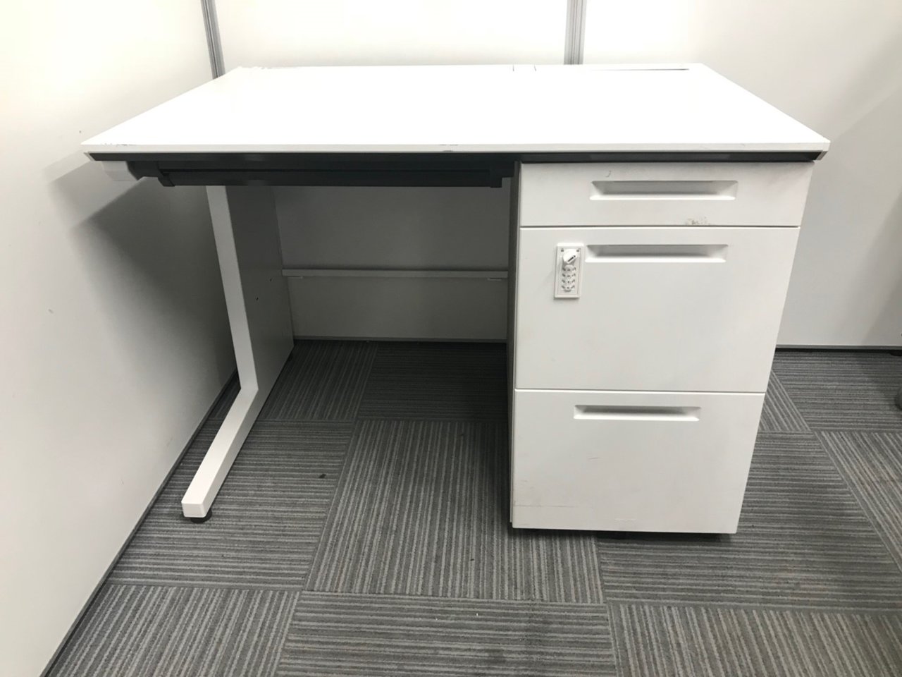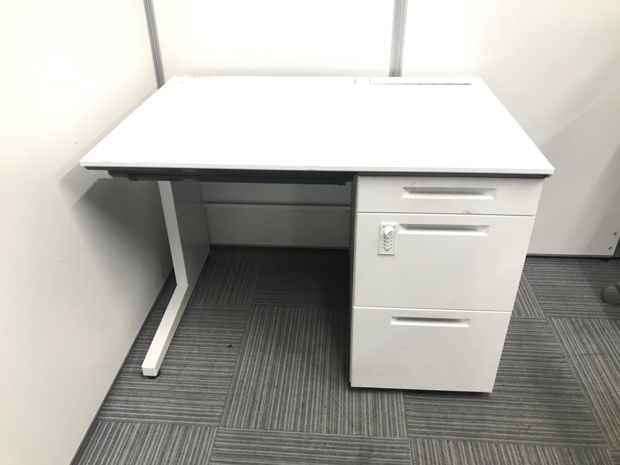 【省スペースのオフィスに最適!コンパクトサイズの片袖机!配線カバーも充実の高品質デスク!】■コクヨ(KOKUYO)製 アイエス(iS)シリーズ 片袖机 W1000×D700㎜ ■シリンダー錠 ■ホワイト【2510】弊社使用欄【A01043968】