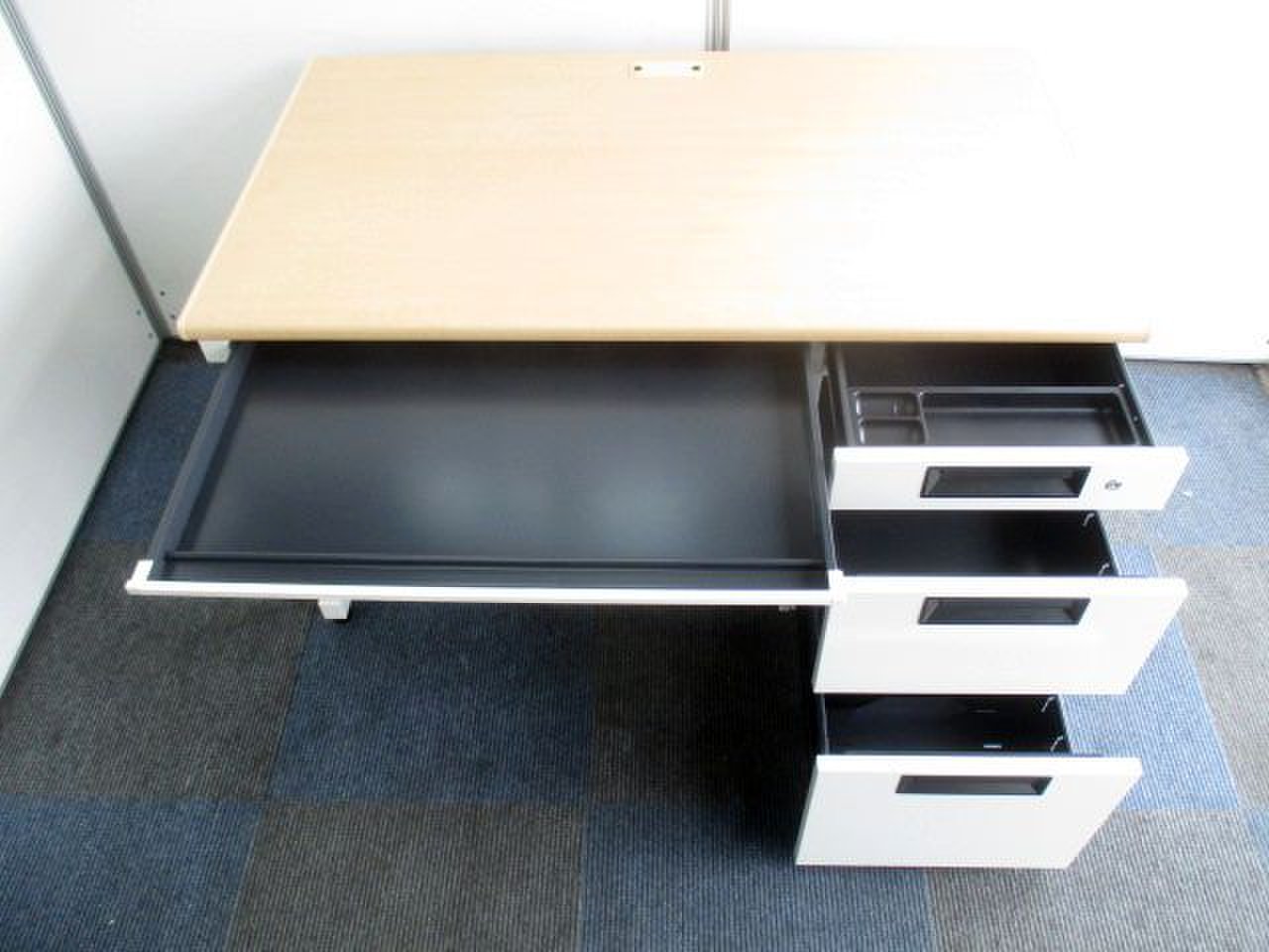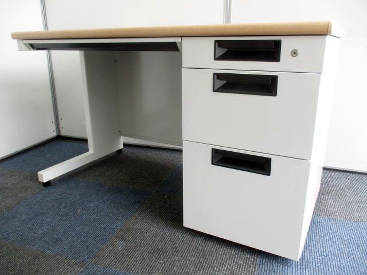 珍しいナチュラル天板の片袖机です。