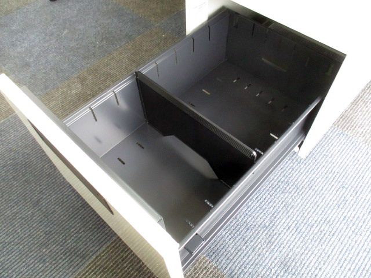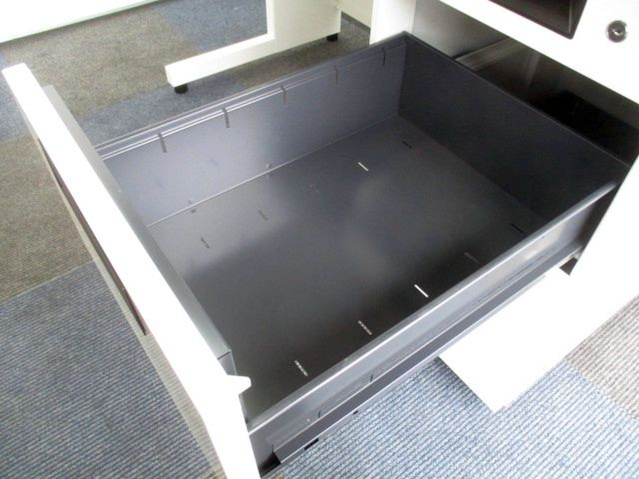 右側の袖には書類や小物の収納がおすすめで、カギも掛かります。