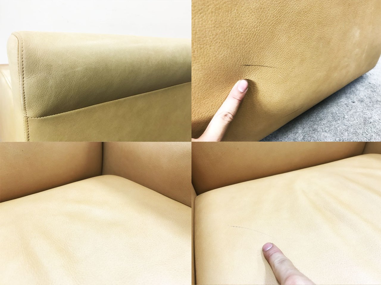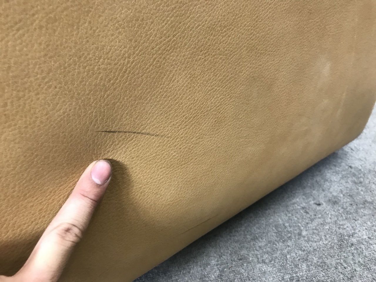- 目立つ箇所複数あり深い傷・破れ・ほつれ・へたり・しわが商品全体にある。(例、座面・背もたれ、脚部等にある。)
