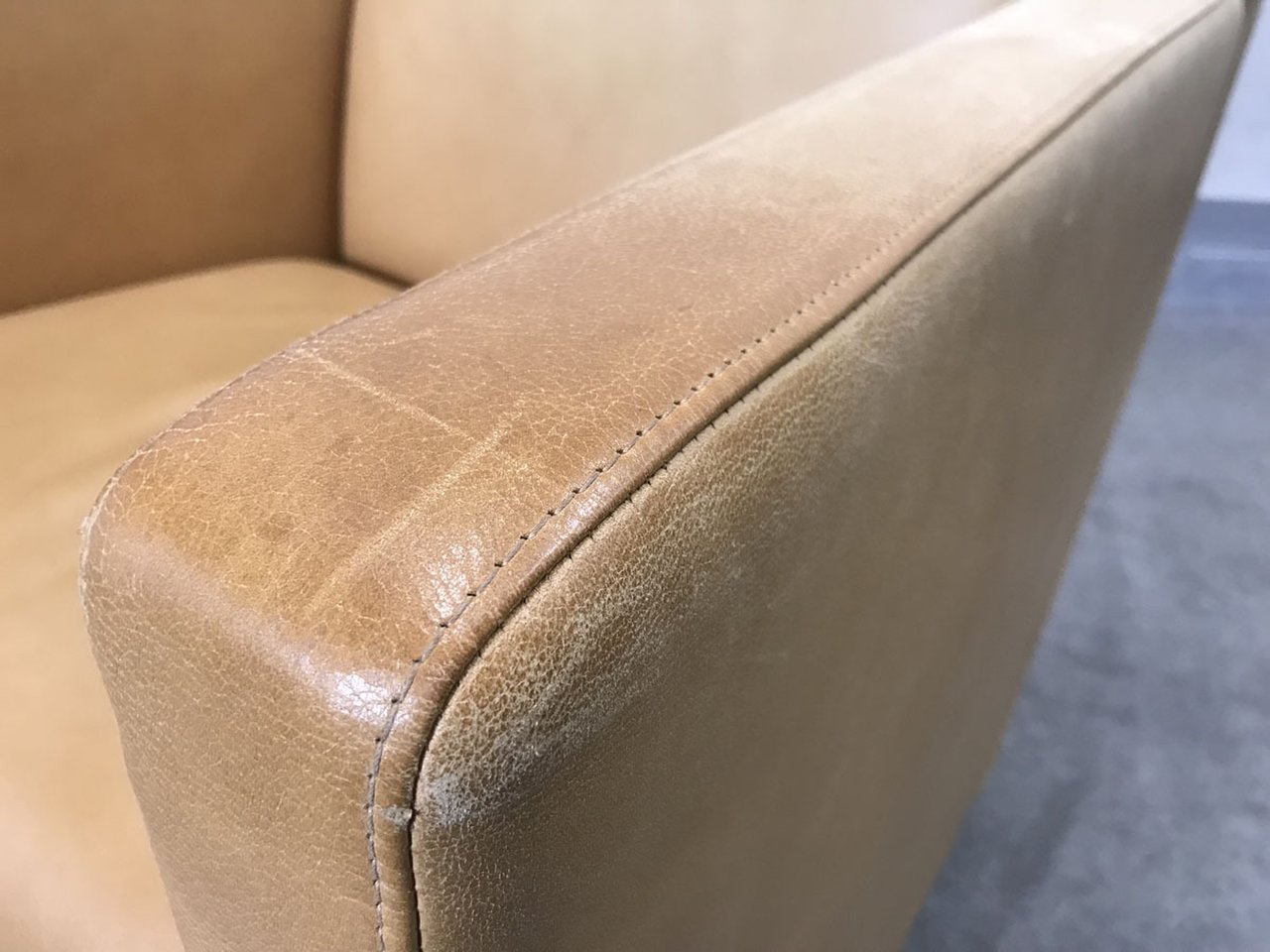 - あり黄ばみ・変色が広い範囲にうっすらある、または濃い黄ばみ・変色が一部ある。(例、座面・背もたれ、脚部等にある。)