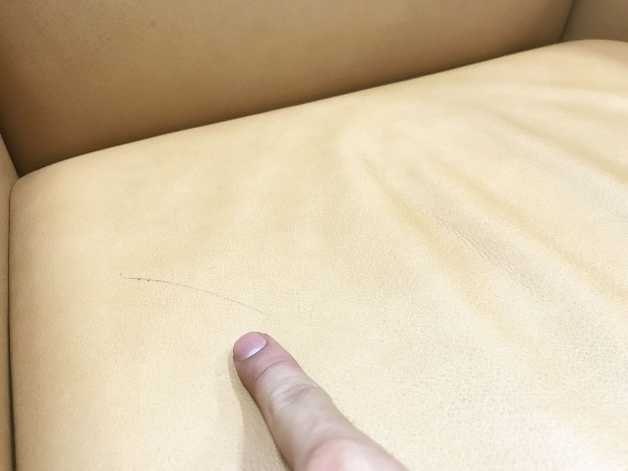 - 目立つ箇所複数あり深い傷・破れ・ほつれ・へたり・しわが商品全体にある。(例、座面・背もたれ、脚部等にある。)