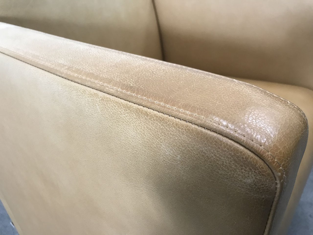 - あり黄ばみ・変色が広い範囲にうっすらある、または濃い黄ばみ・変色が一部ある。(例、座面・背もたれ、脚部等にある。)