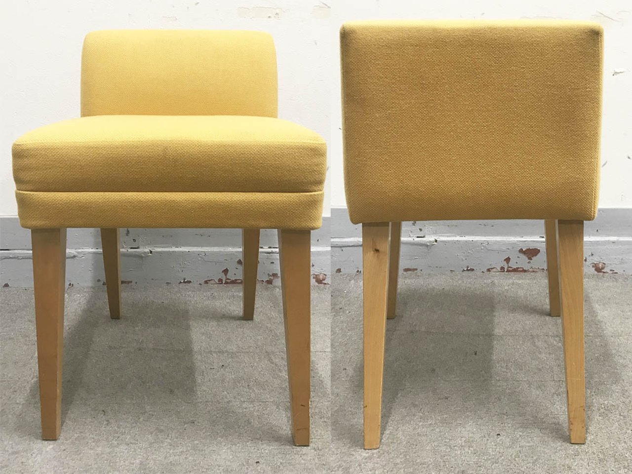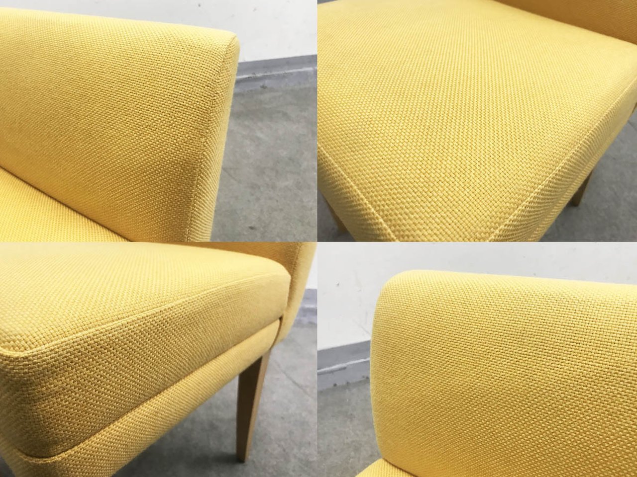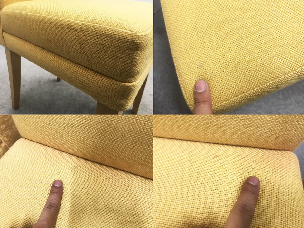 - かなり強い濃い黄ばみ・変色が商品全体にある。(例、座面・背もたれ、脚部等にある。)