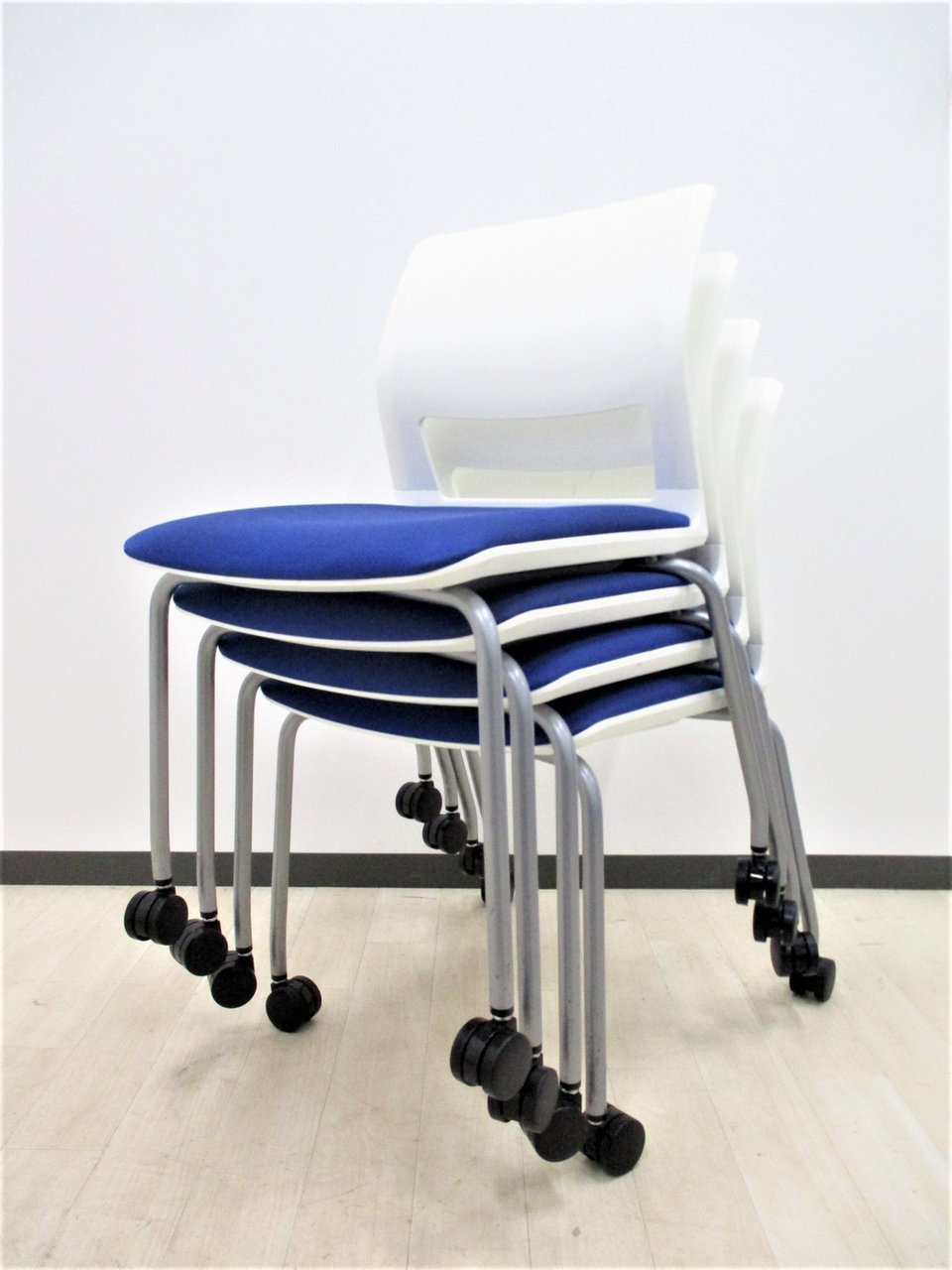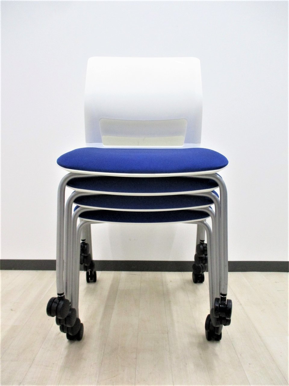 【重ねて収納可能!スペースの削減にお勧めなスタッキングチェア!】■コクヨ(KOKUYO)製 CK-160 スタッキングチェア ミーテイングチェア ■背カバーあり ■ブルー×ホワイトシェル
