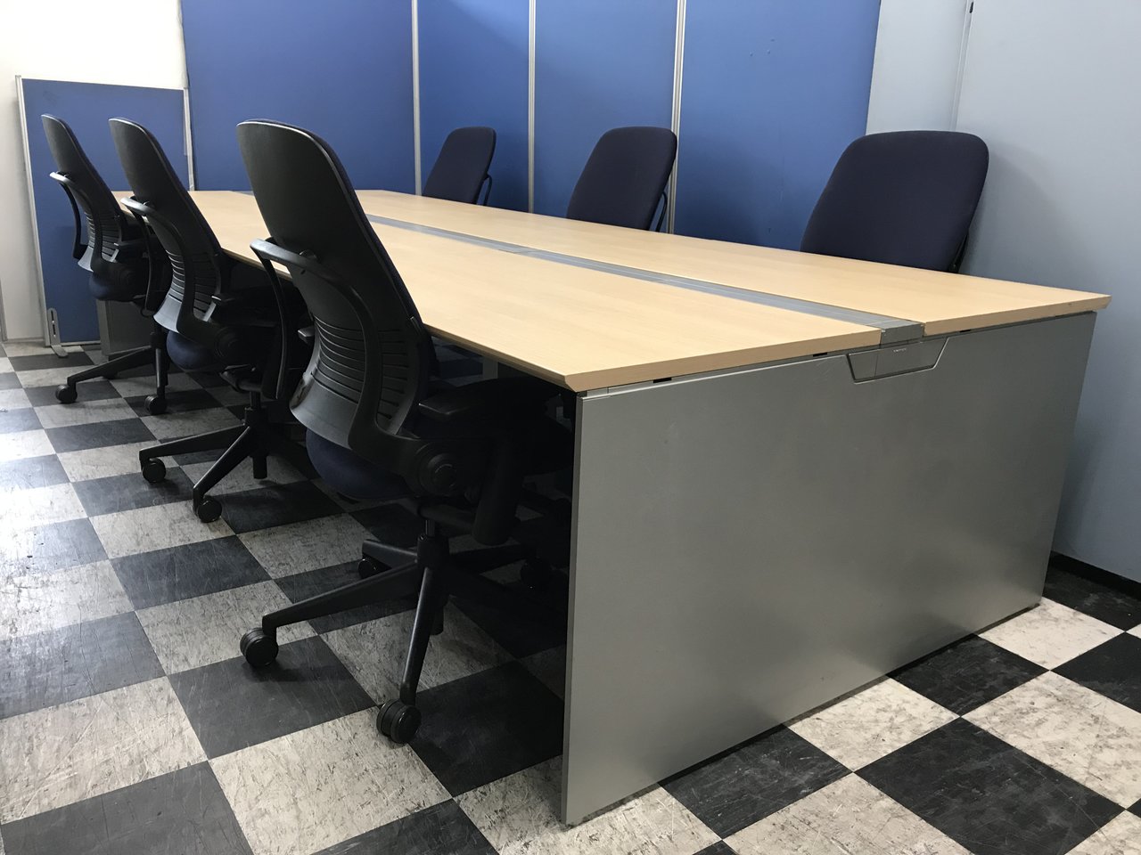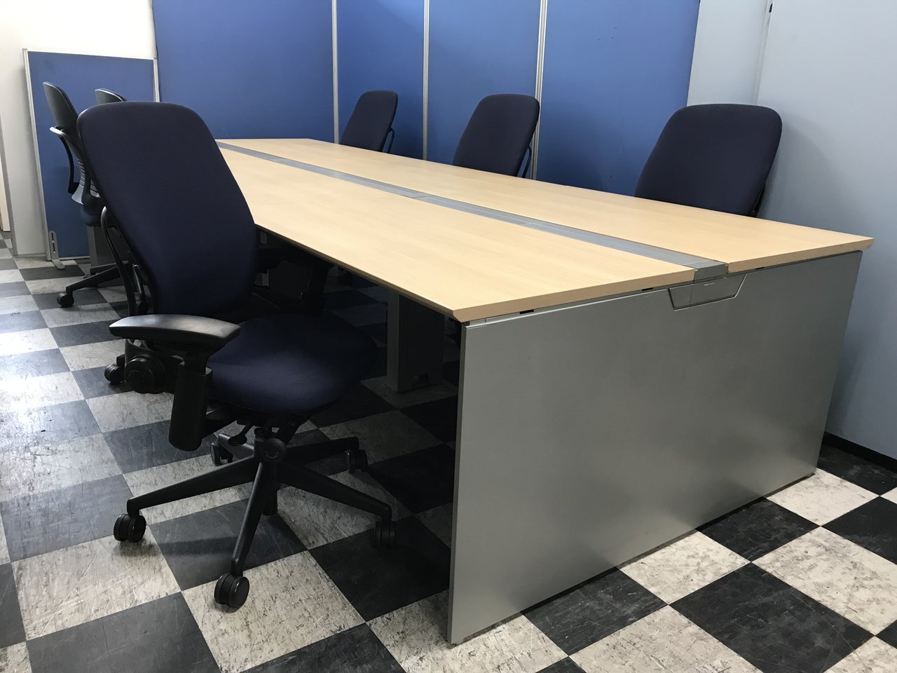 【即使用可能】フリーアドレスデスク+6脚チェアセット!さらに人気のリープチェア!ナチュラル天板でオフィスを明るく!!- 埼玉本店