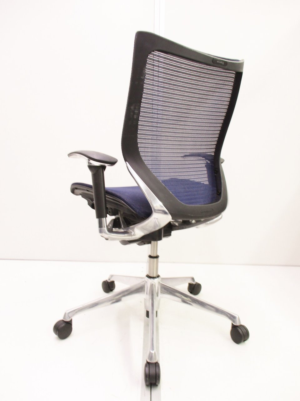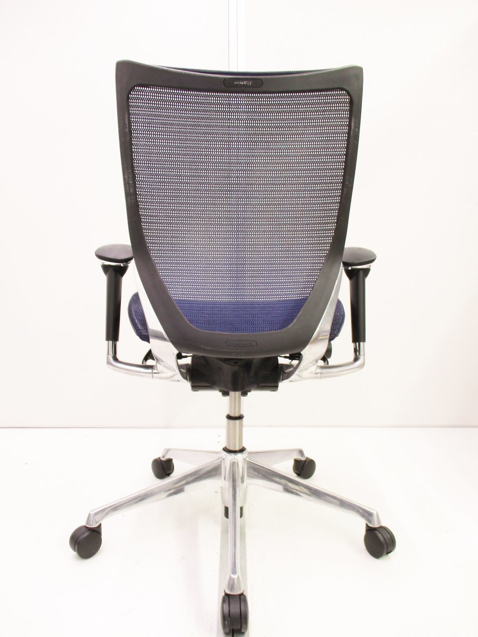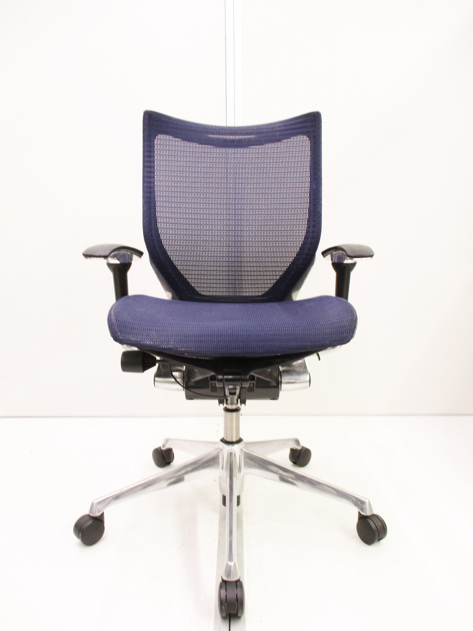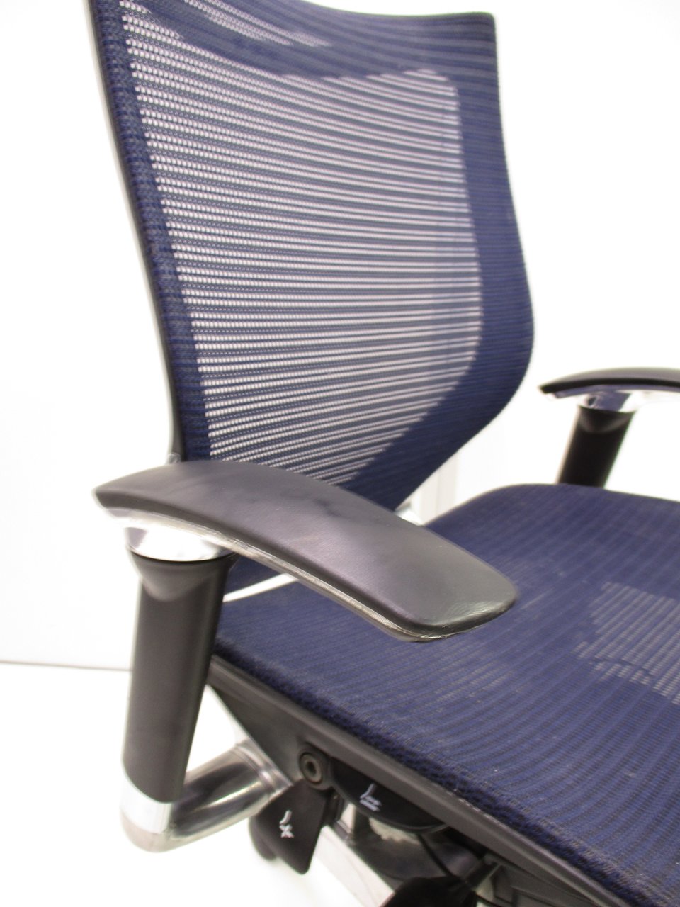 【座面が大人気!国産メッシュチェアの代表格!】■オカムラ(okamura)製 バロン(Baron)チェア ローバック 肘付き ■背面メッシュ ■固定肘 ■色:ダークブルー ■ハンガー付き